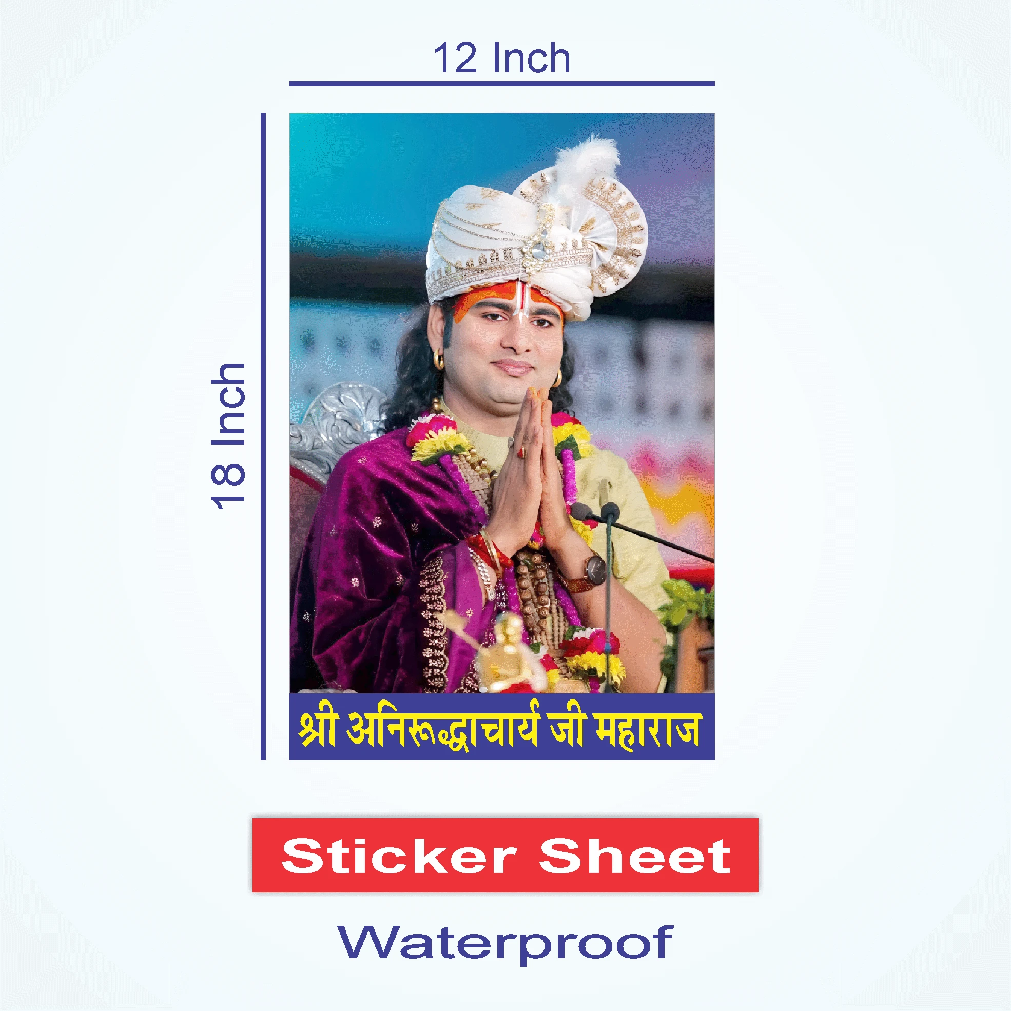 Bring positive energy and spirituality to your space with this premium 12x18 inch Shri Aniruddhacharya Ji Maharaj Sticker Poster. This high-quality, waterproof sheet features a beautiful image of Maharaj Ji in a blessing pose, along with his famous 'Anmol Vachan' (Precious Teachings) for a purposeful life. It is perfect for meditation rooms, home mandirs, offices, or study areas. The self-adhesive material makes it easy to stick and the vibrant colours are designed to last. An ideal gift for devotees and followers of Shri Aniruddhacharya Ji. Size: 12" W x 18" H |