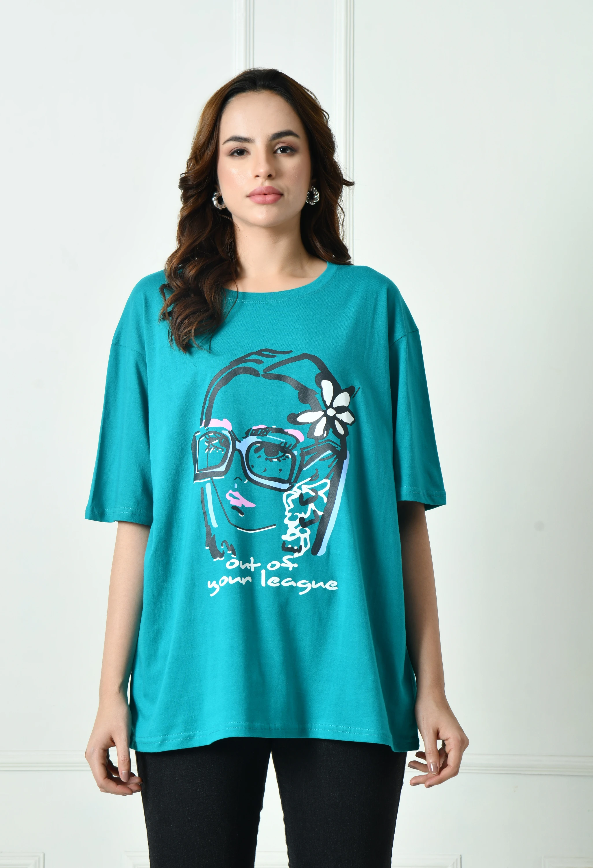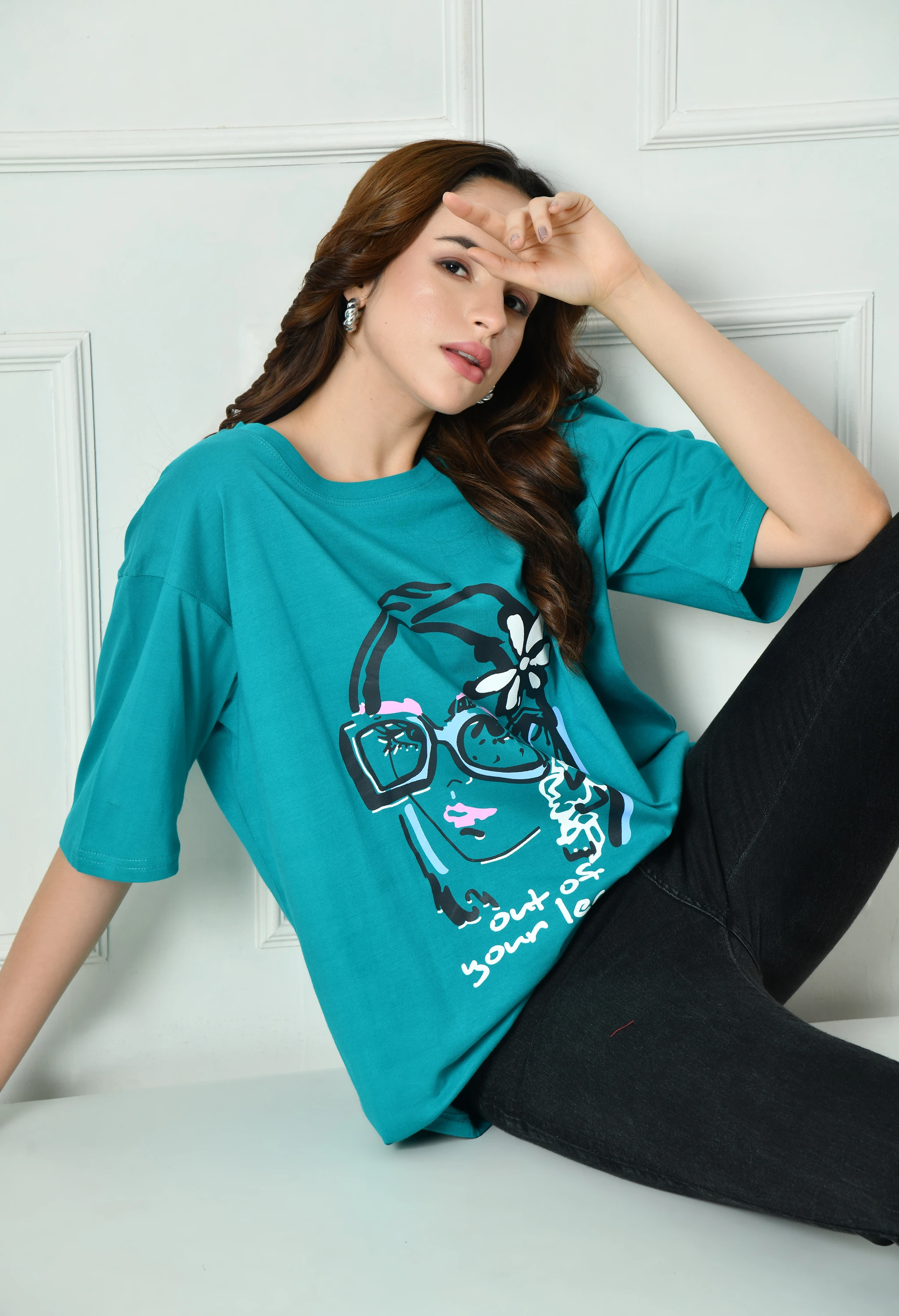 Sky Graphic T-Shirt for Women | Women’s Relaxed Fit Sky Graphic T-Shirt | Women’s Round Neck Graphic T-Shirt | Sky Oversized Round Neck Casual T-Shirt | Trendy Oversized Cotton Casual Printed Top | Oversized Sky T-Shirt for Women | Modern Art Graphic T-Sh