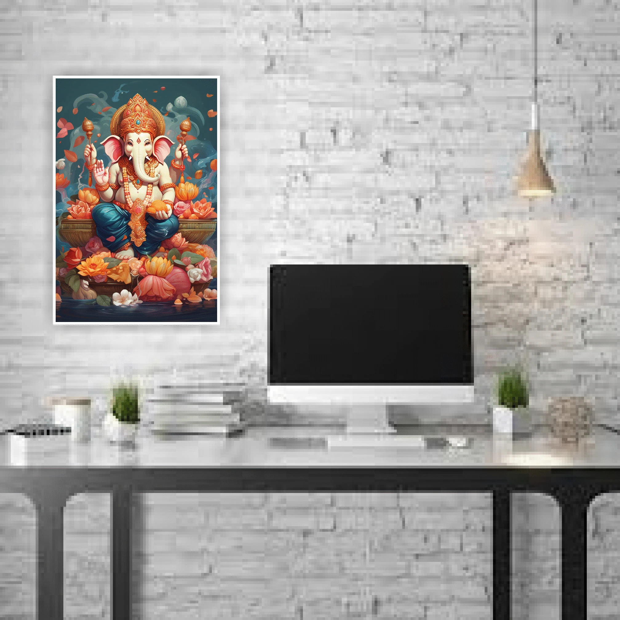 Bring home the divine blessings of Lord Ganesha with this exclusive Combo of 2 Premium Wall Sticker Posters. These beautifully designed posters feature two unique avatars of Ganpati Bappa—a cute modern digital art style and a traditional floral aesthetic. Measuring 12x18 inches, these posters are printed on high-quality waterproof vinyl material. They come with a self-adhesive backing, making them extremely easy to apply on any smooth surface like walls, glass, or doors without any extra glue. Perfect for decorating your home, office, or meditation room, these stickers add a spiritual and vibrant touch to your interiors. |