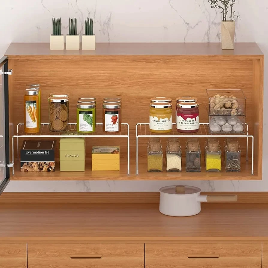 Upgrade your kitchen organization with this Stainless Steel Kitchen Dish Rack Set of 2, designed to maximize storage space in cabinets, countertops, and pantry shelves. Made from high-quality rustproof stainless steel, these racks provide a durable and sturdy solution for organizing plates, bowls, cups, and kitchen essentials. The expandable design allows you to adjust the rack according to your storage needs, making it perfect for different cabinet sizes. Whether placed inside cabinets, on the countertop, or in the pantry, these shelves help create extra storage space while keeping your kitchen neat and clutter-free. This multipurpose kitchen organizer can also be used for storing spices, containers, utensils, or small kitchen appliances. The sleek silver finish adds a modern touch to your kitchen décor while ensuring long-lasting durability. Ideal for homes with limited kitchen space, these racks offer a smart and practical storage solution to keep everything easily accessible and well organized. Key Features