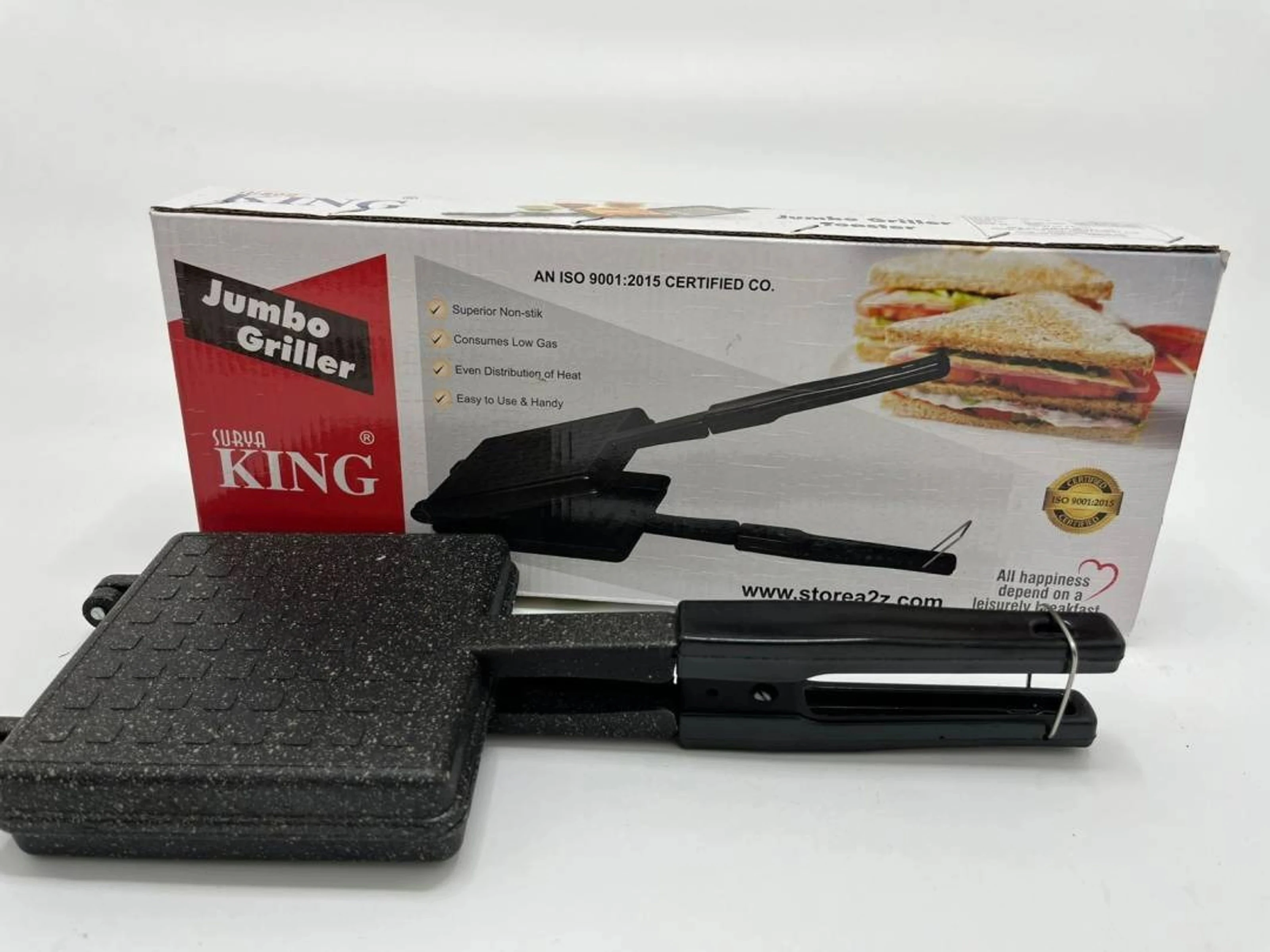 The Surya King Jumbo Gas Toaster is designed for quick and easy sandwich grilling at home. Made with a heavy thickness body, it ensures durability and even heat distribution for perfectly crispy results every time. The non-stick coating prevents food from sticking and makes cleaning effortless. Its jumbo size allows you to prepare large sandwiches conveniently, making it ideal for families. Compatible with gas stoves, this sandwich maker is perfect for daily use. The heat-resistant handle provides a safe and comfortable grip while cooking. A must-have kitchen tool for delicious homemade grilled sandwiches. |