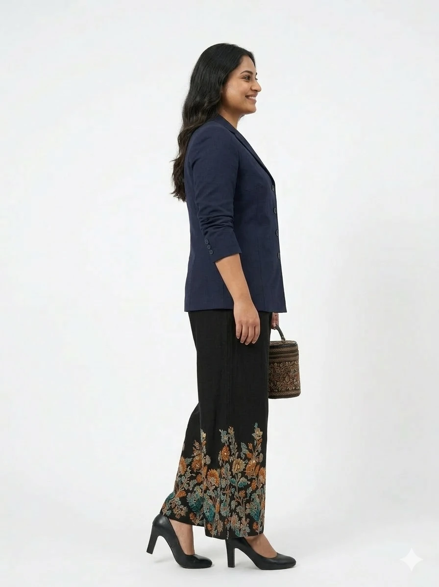Elevate your wardrobe with these stylish black palazzo pants, designed for both comfort and sophistication. Crafted from a breathable, lightweight fabric, these wide-leg pants offer a relaxed fit that moves gracefully with you. |