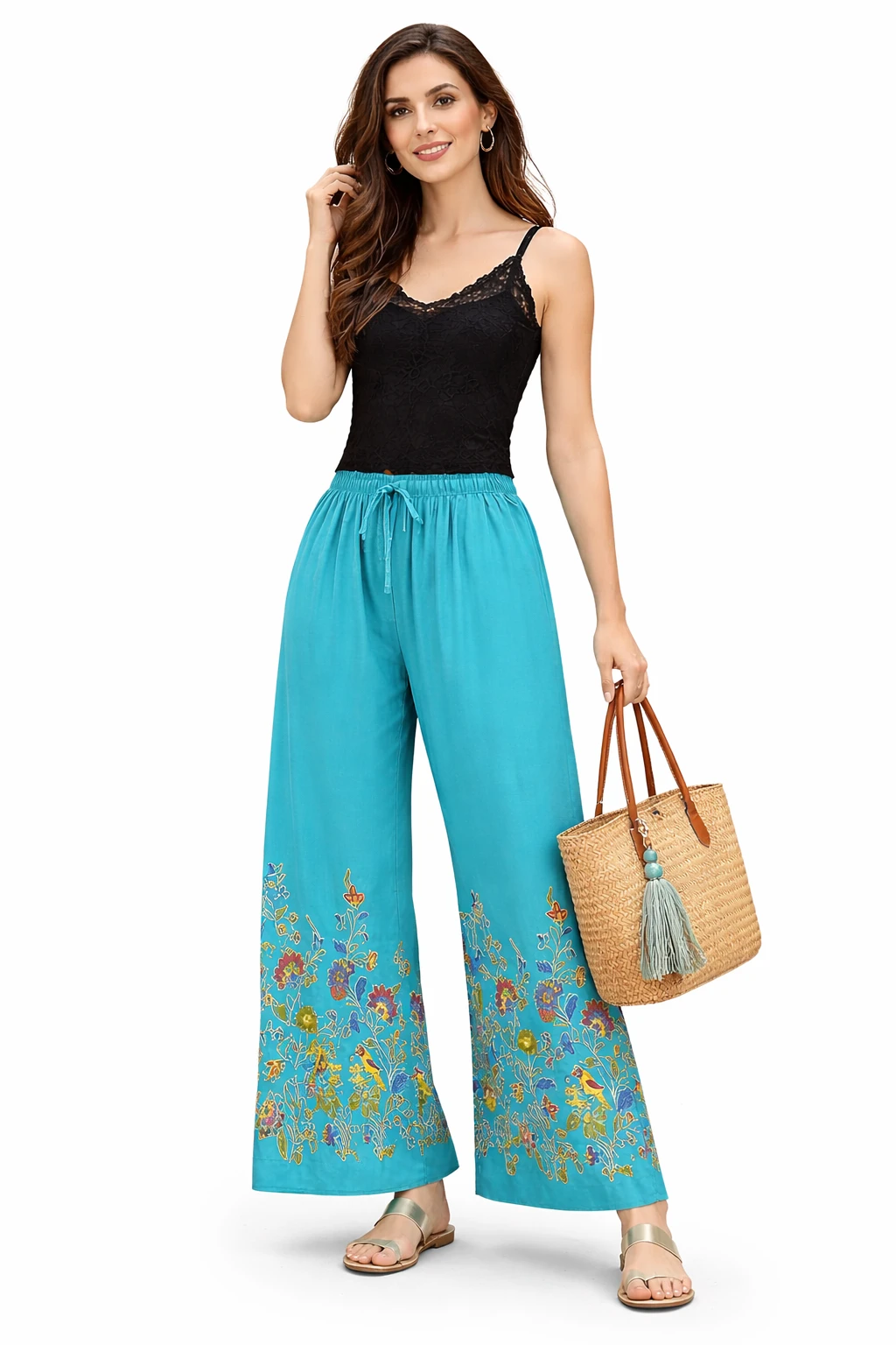 SUTEKI Floral Printed Palazzo Pants with Drawstring Waist