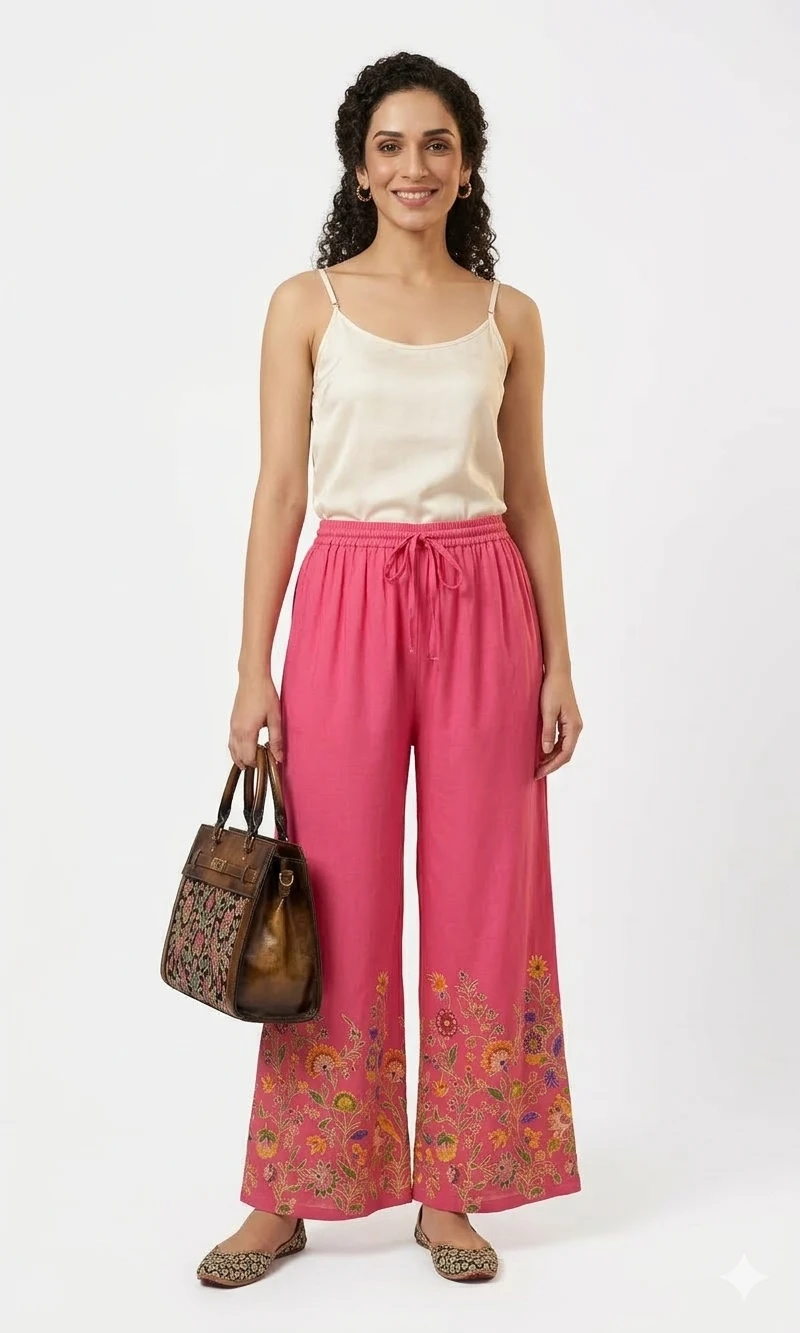 Add a refreshing pop of color to your wardrobe with these elegant turquoise palazzo pants. Designed for effortless comfort and style, these wide-leg pants feature a soft, lightweight fabric that drapes beautifully and allows easy movement throughout the day. |