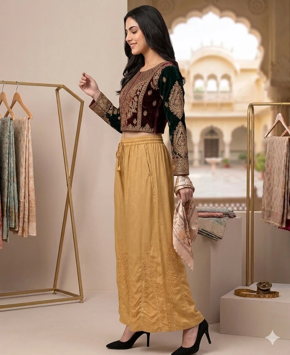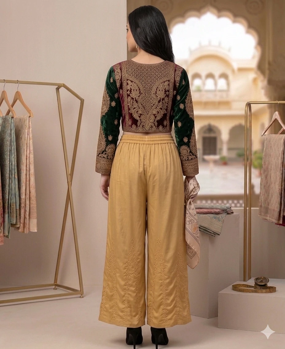 SUTEKI Women's Ethnic Rayon Mirror Work Palazzo