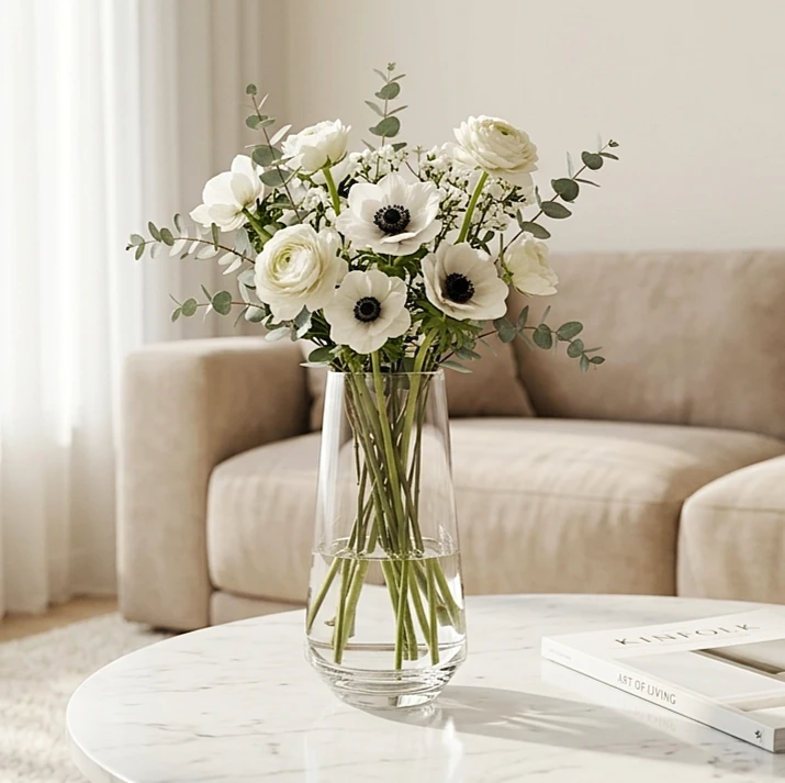 Key Features Premium Quality Material: Crafted from high-quality, high-transparency glass with a smooth, polished finish and weighted base for added stability. Modern Aesthetic: The elegant silhouette features a wider base that narrows towards the top, providing a minimalist and stylish look that complements any interior theme—from modern rustic to boho chic. Versatile Decoration: An ideal centerpiece for dining tables, kitchen counters, living room shelves, office desks, or as a decorative accent for weddings and housewarming gifts. Optimal Size for Arrangements: Designed to hold various floral styles including long-stemmed flowers, hydrangeas, or dried branches. |