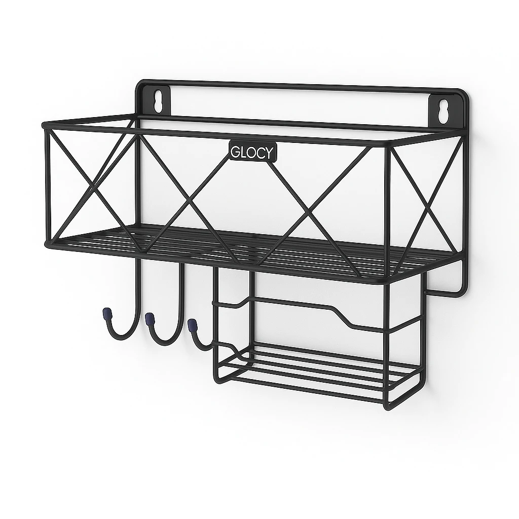 Upgrade your bathroom or kitchen organization with this Multipurpose Wall Rack with Towel Hanger & Hooks. Designed for convenience and durability, this wall-mounted storage rack helps keep your essentials neatly arranged and easily accessible. It is perfect for storing shampoo bottles, soap, perfumes, toiletries, and towels while saving valuable space. Made from high-quality stainless steel, the rack is rust-resistant, waterproof, and durable, making it ideal for humid environments like bathrooms and kitchens. The integrated towel hanger and hooks provide additional space to hang towels, loofahs, brushes, or other accessories. Its modern and sleek design blends perfectly with any home décor, making it a stylish yet practical storage solution. Easy to install, this wall rack is perfect for keeping your space clean, organized, and clutter-free. Key Features