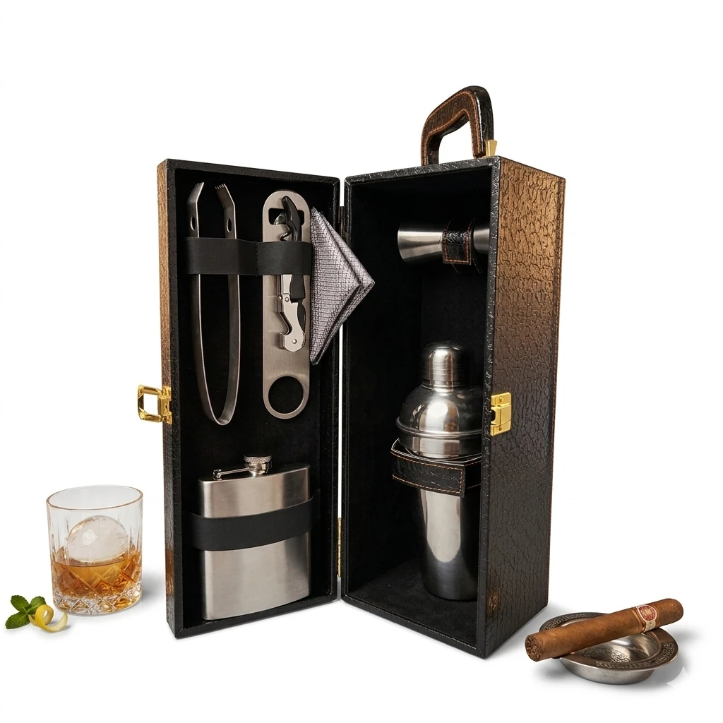 Aapke mehfilon ki shaan badhane ke liye ek behtareen aur elegant bar tool set. Yeh premium quality leatherette case ke sath aata hai, jo ise ek luxury look aur mazbooti deta hai. Chahe ghar par party ho ya doston ke sath safar, yeh set har jagah ke liye perfect hai. |