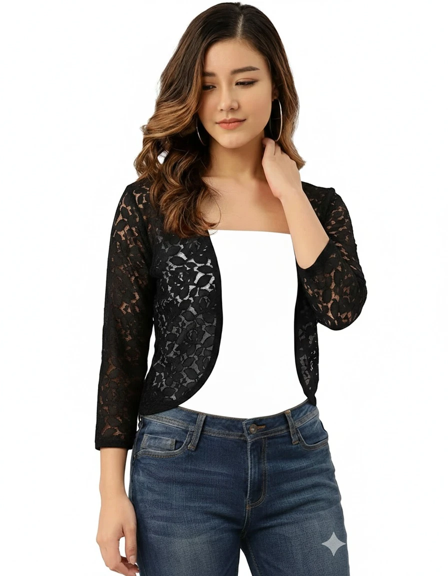 woman white net shrug sleeves