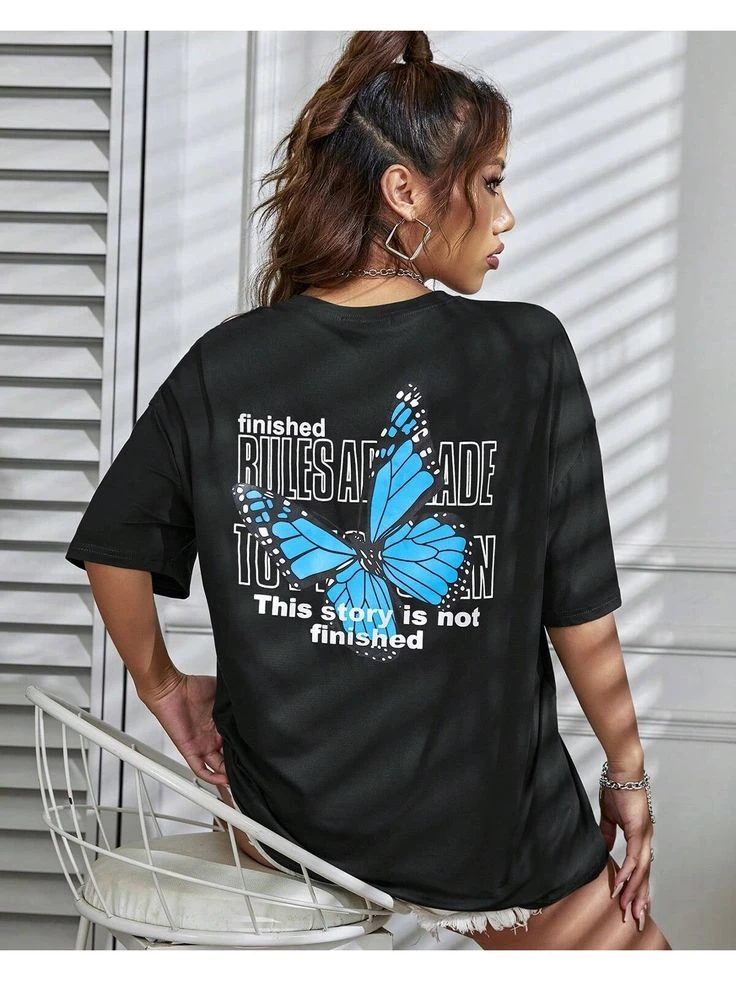 Women Black Printed T-shirt
