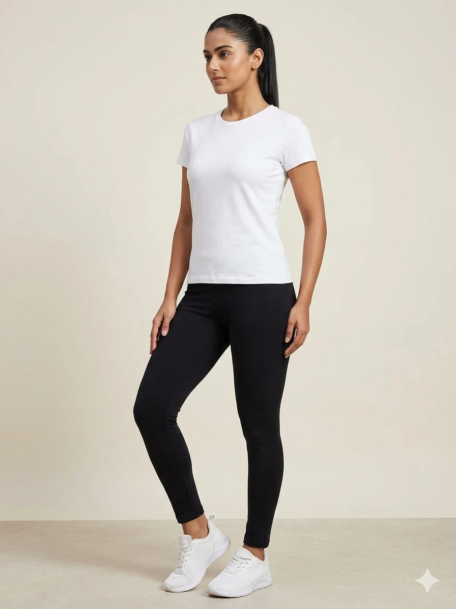 Upgrade your daily wardrobe with this stylish and comfortable Women’s Black Rayon Leggings. Made from premium quality rayon fabric, these leggings are soft, stretchable, and perfect for all-day comfort. The breathable material ensures a smooth feel on the skin while providing a perfect fit. These leggings are designed with an elastic waistband that gives a snug and flexible fit. The solid black color makes them easy to pair with kurtis, tops, and tunics for casual wear, office wear, or daily use. The ankle-length design adds a modern look while keeping you comfortable throughout the day.