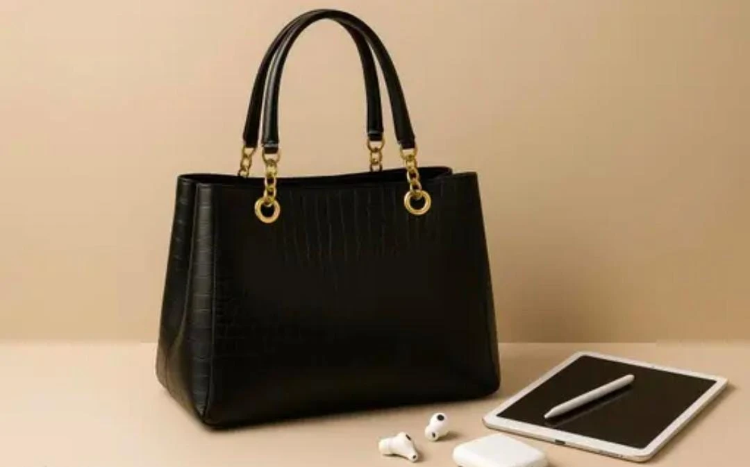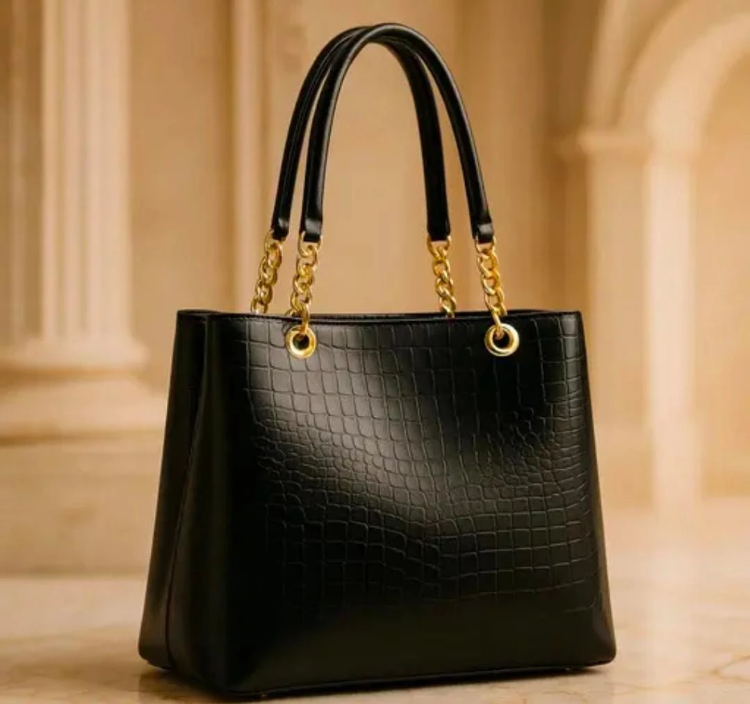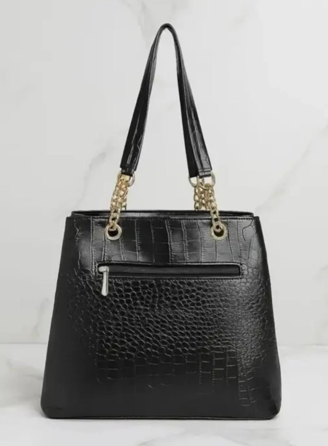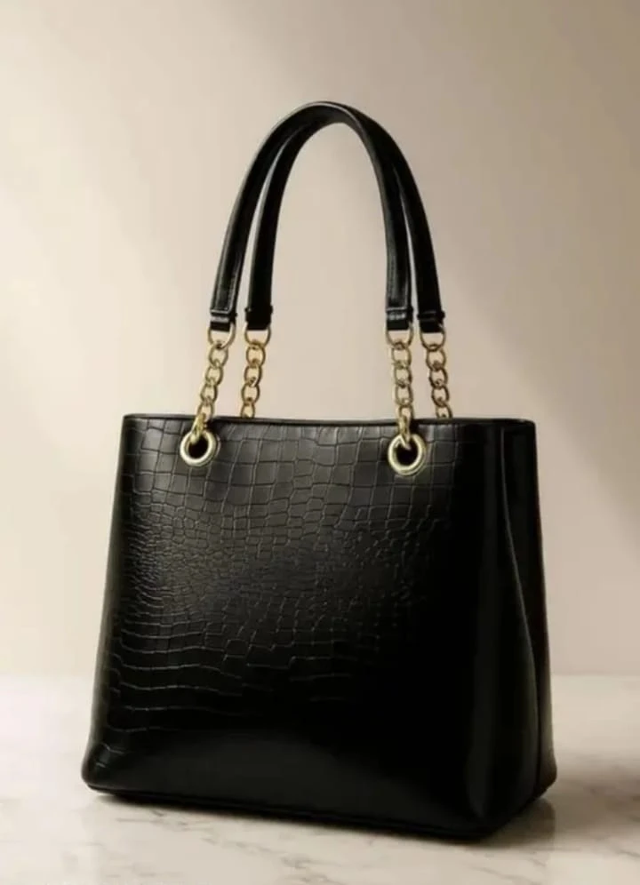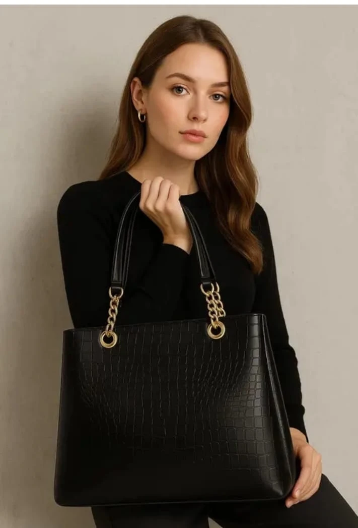 Women Elegant Crocodile Pattern Tote Handbag with Gold Chain Strap Office Shoulder Bag
