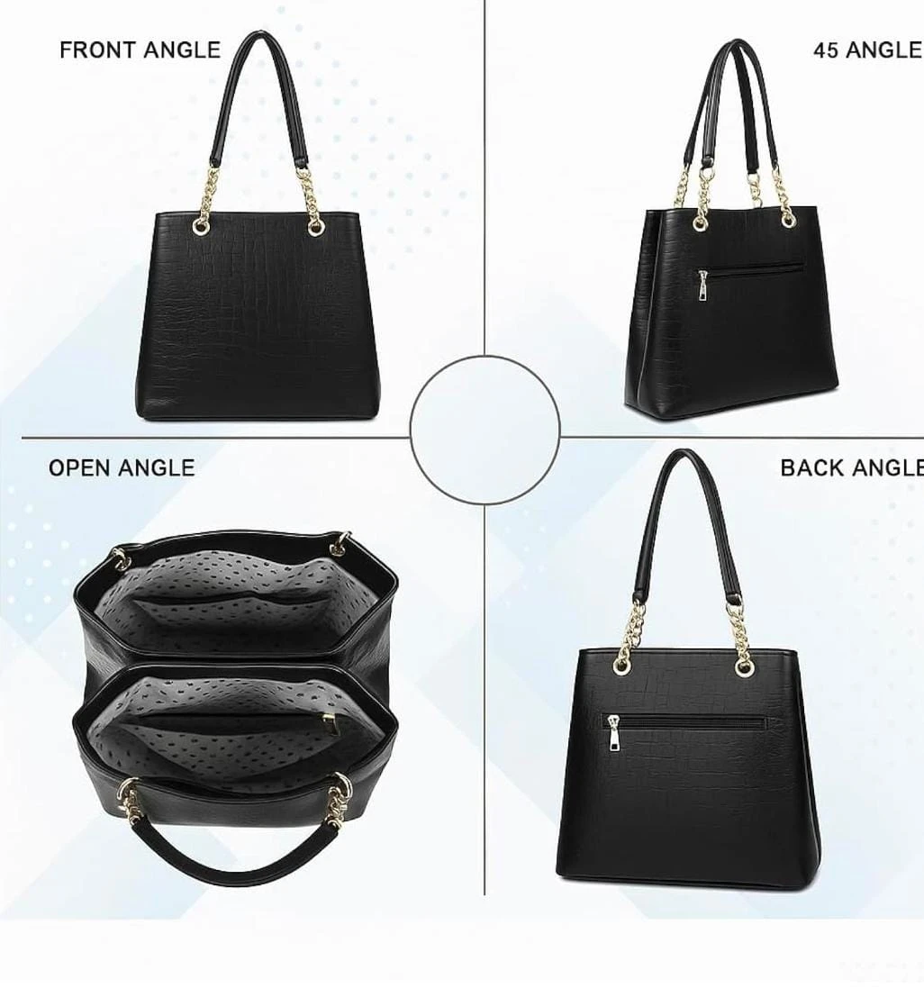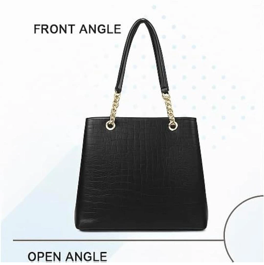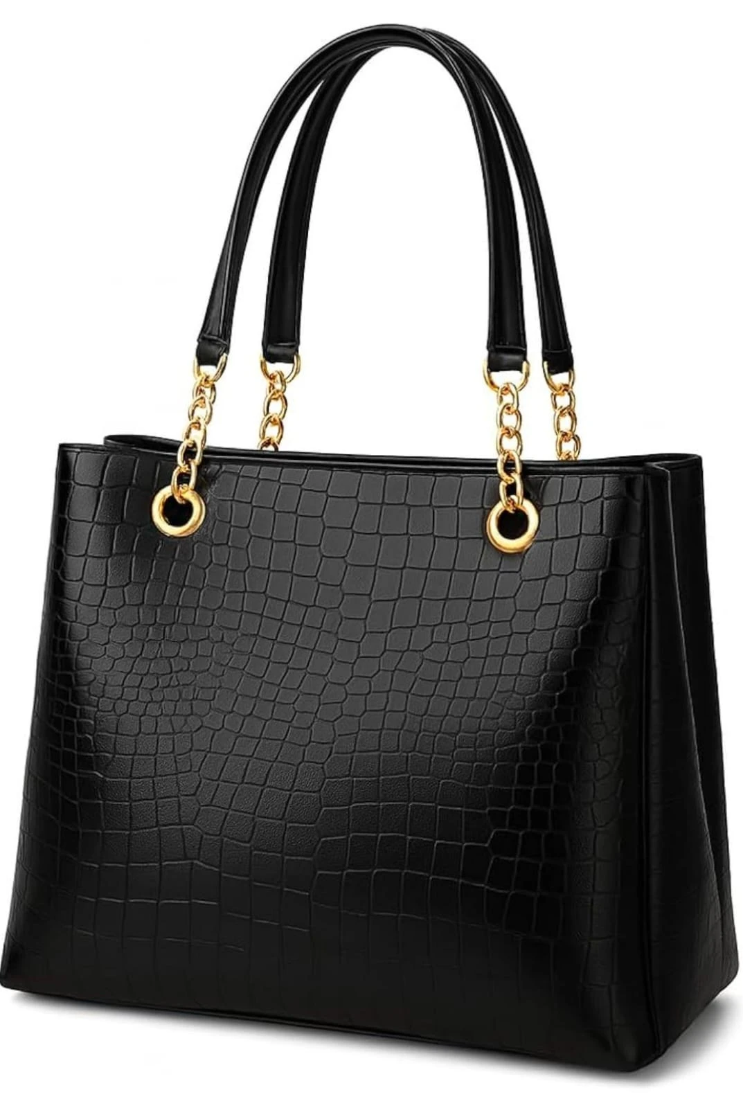 Women Stylish Crocodile Pattern Handbag with Gold Chain Strap | Premium Black Tote Bag for Office & Party