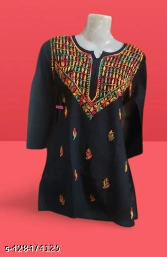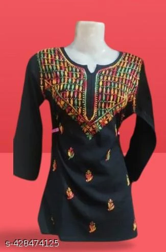 Very Beautiful Ethnic Womens Black Embroidered Full Sleeves Rayon Top suitable for Office and parties . |