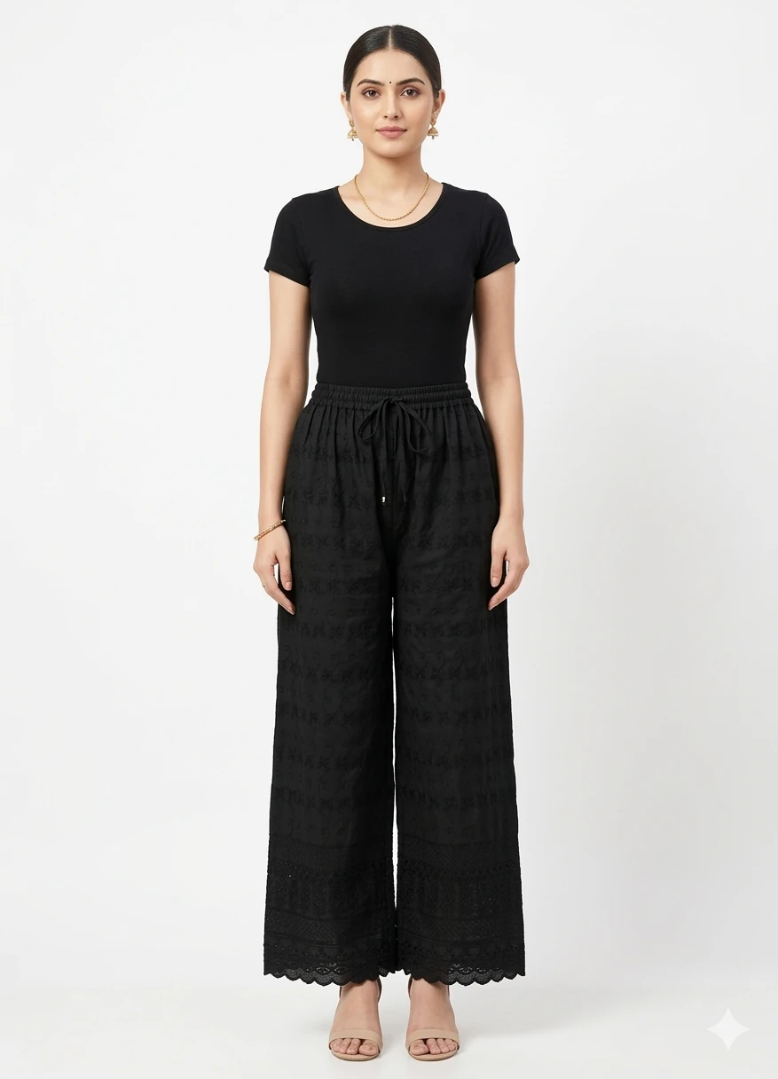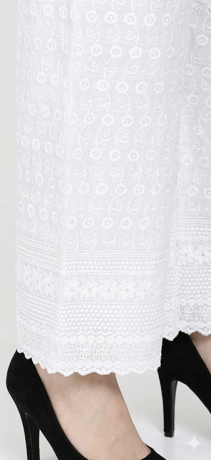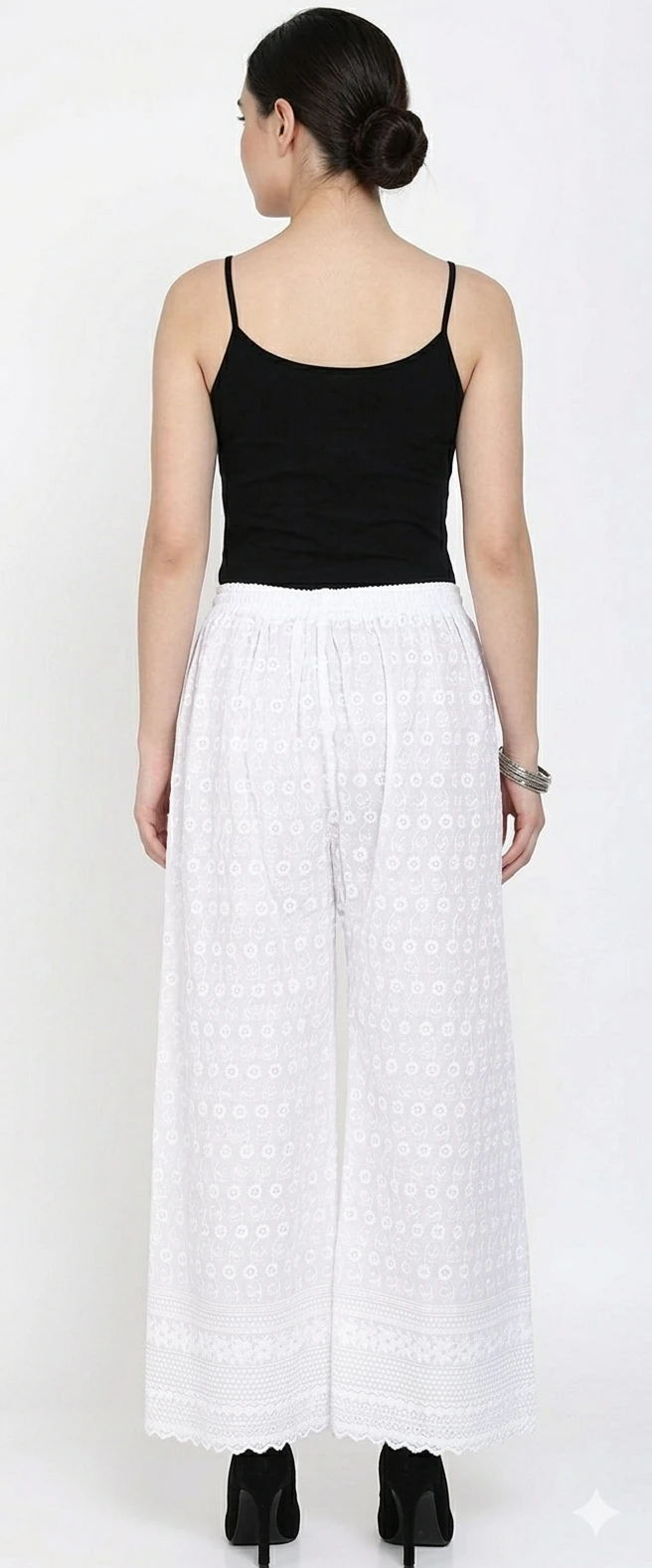 Women's Comfortable Chikankari Palazzo. Cotton material. Daily wear. Chikankari Design. Daily wear. |