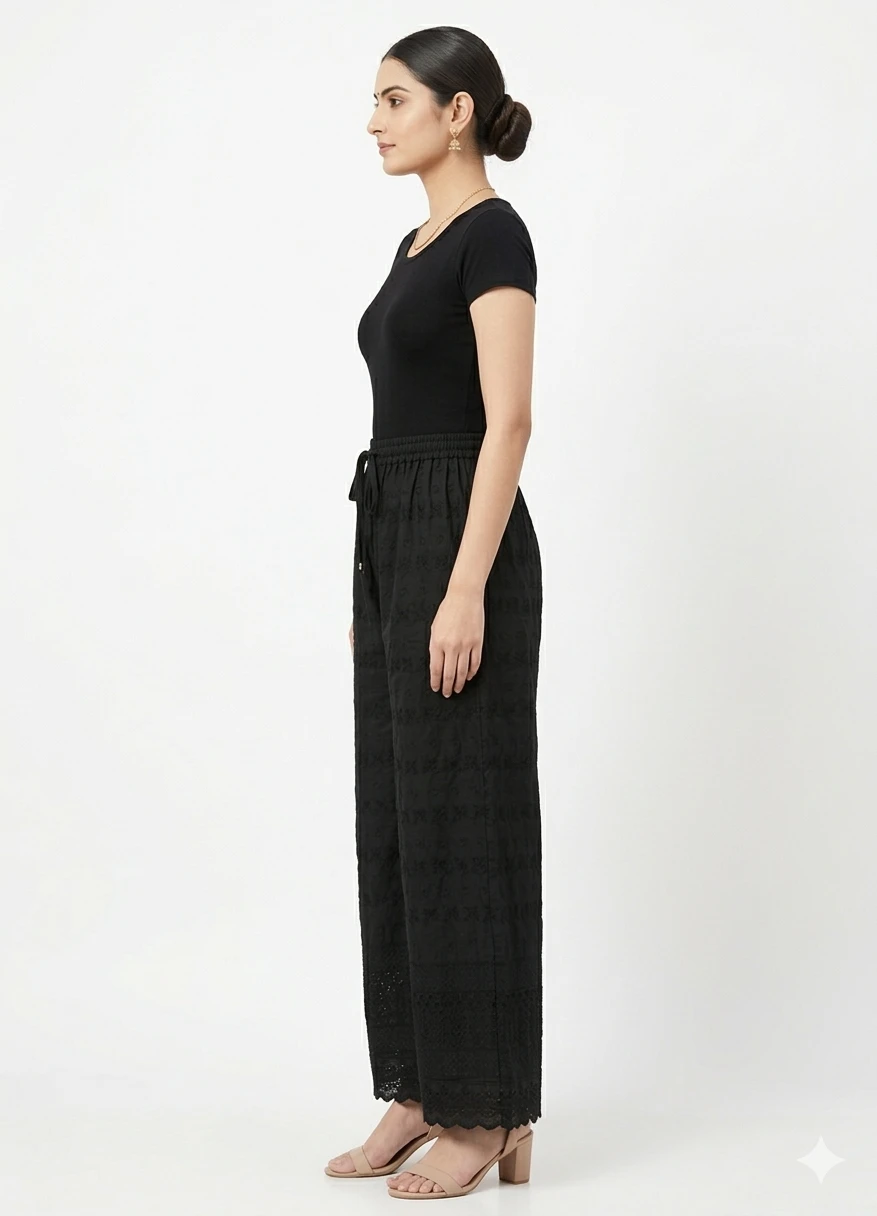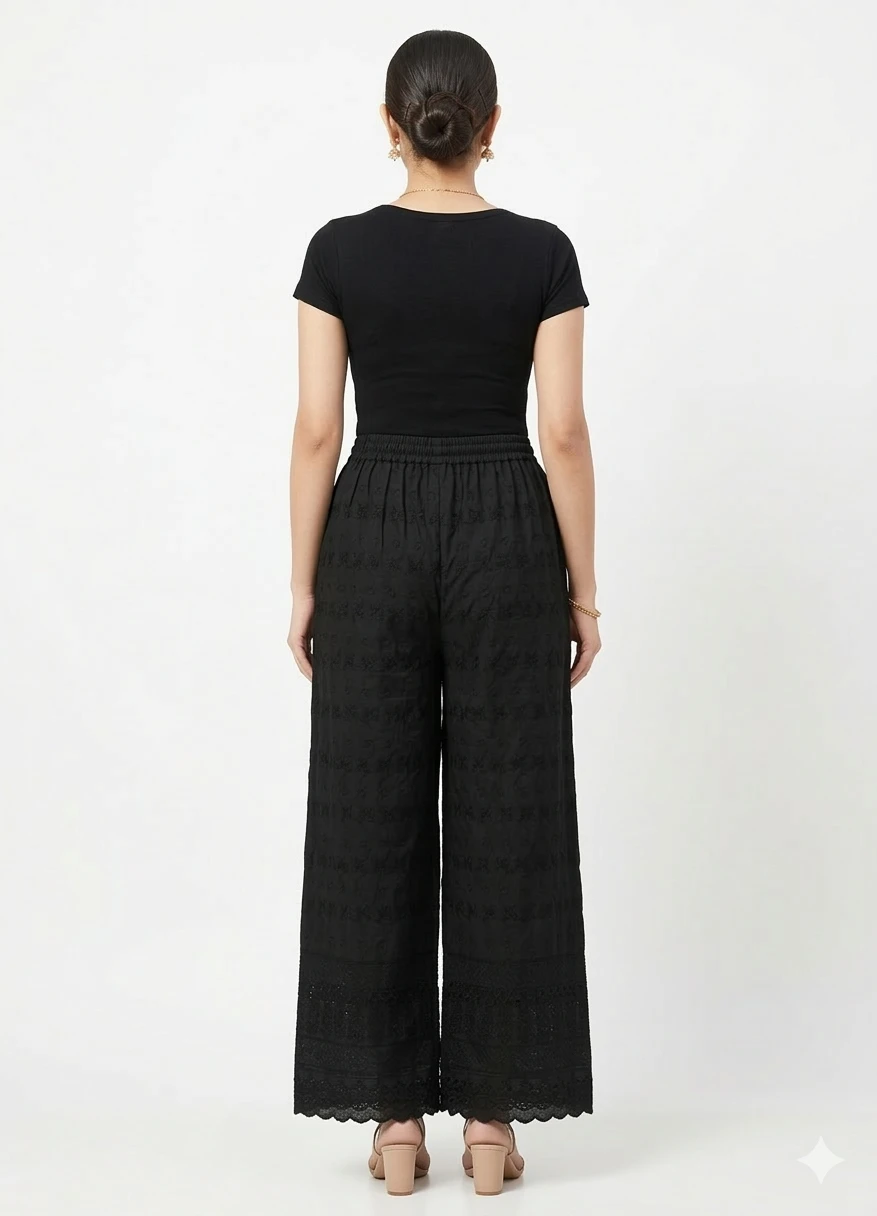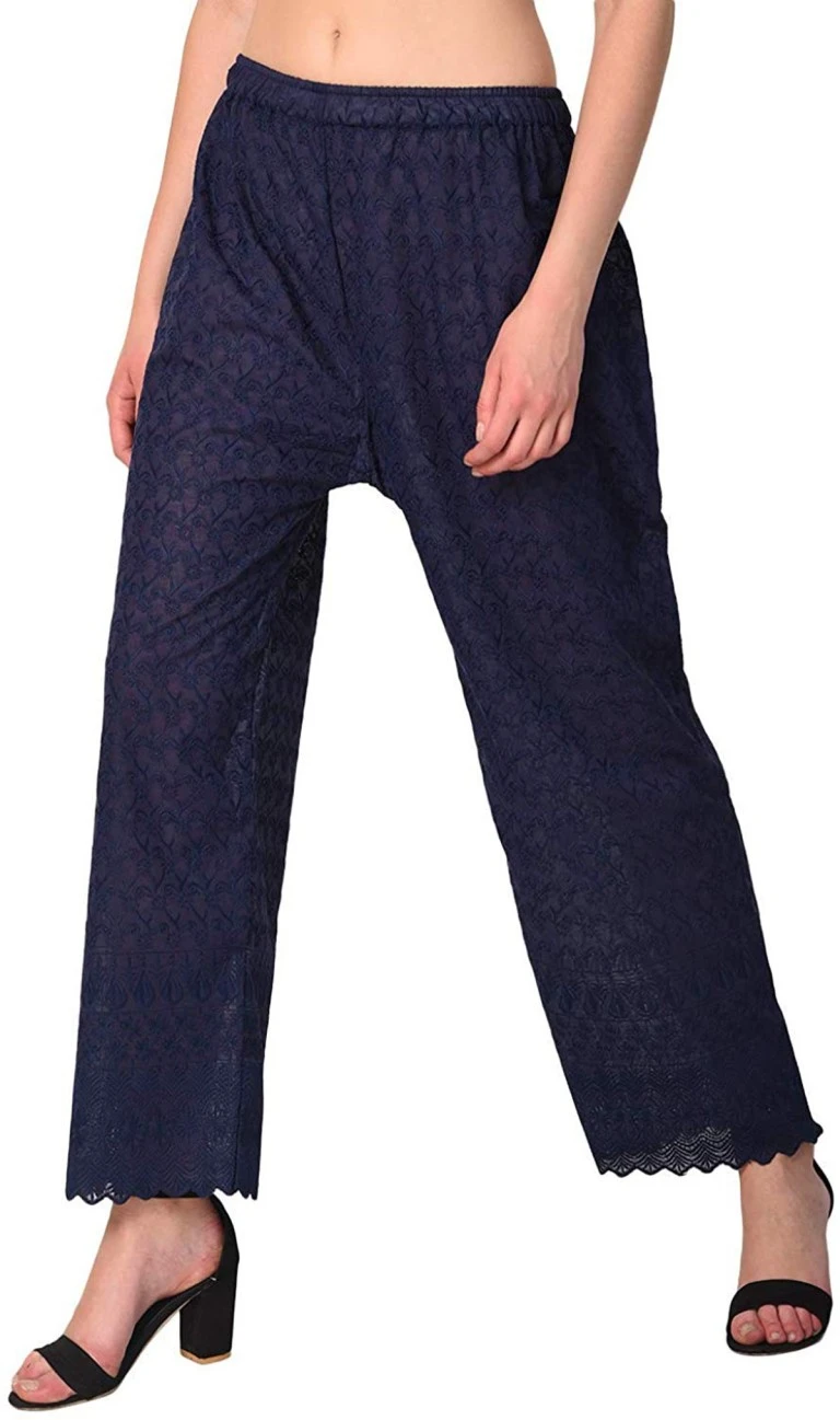 Women's Comfortable Chikankari Palazzo. Cotton material. Daily wear. Chikankari Design. Daily wear. |