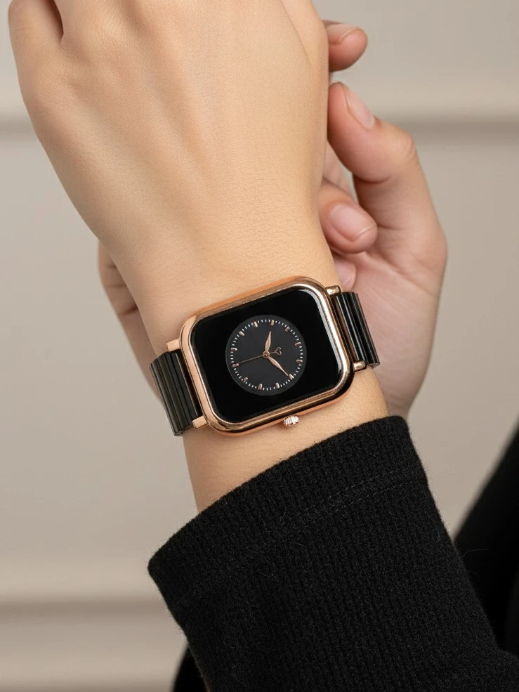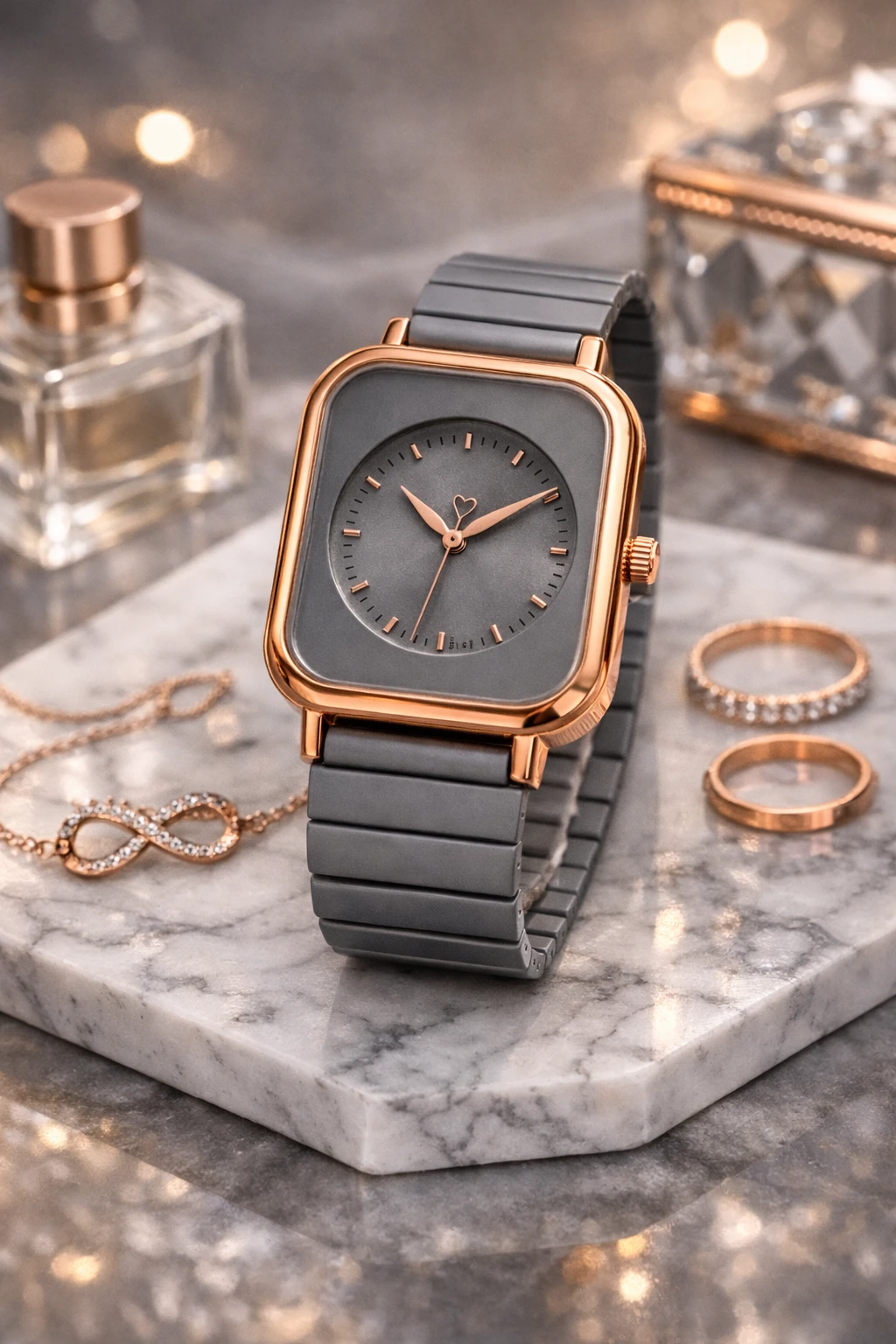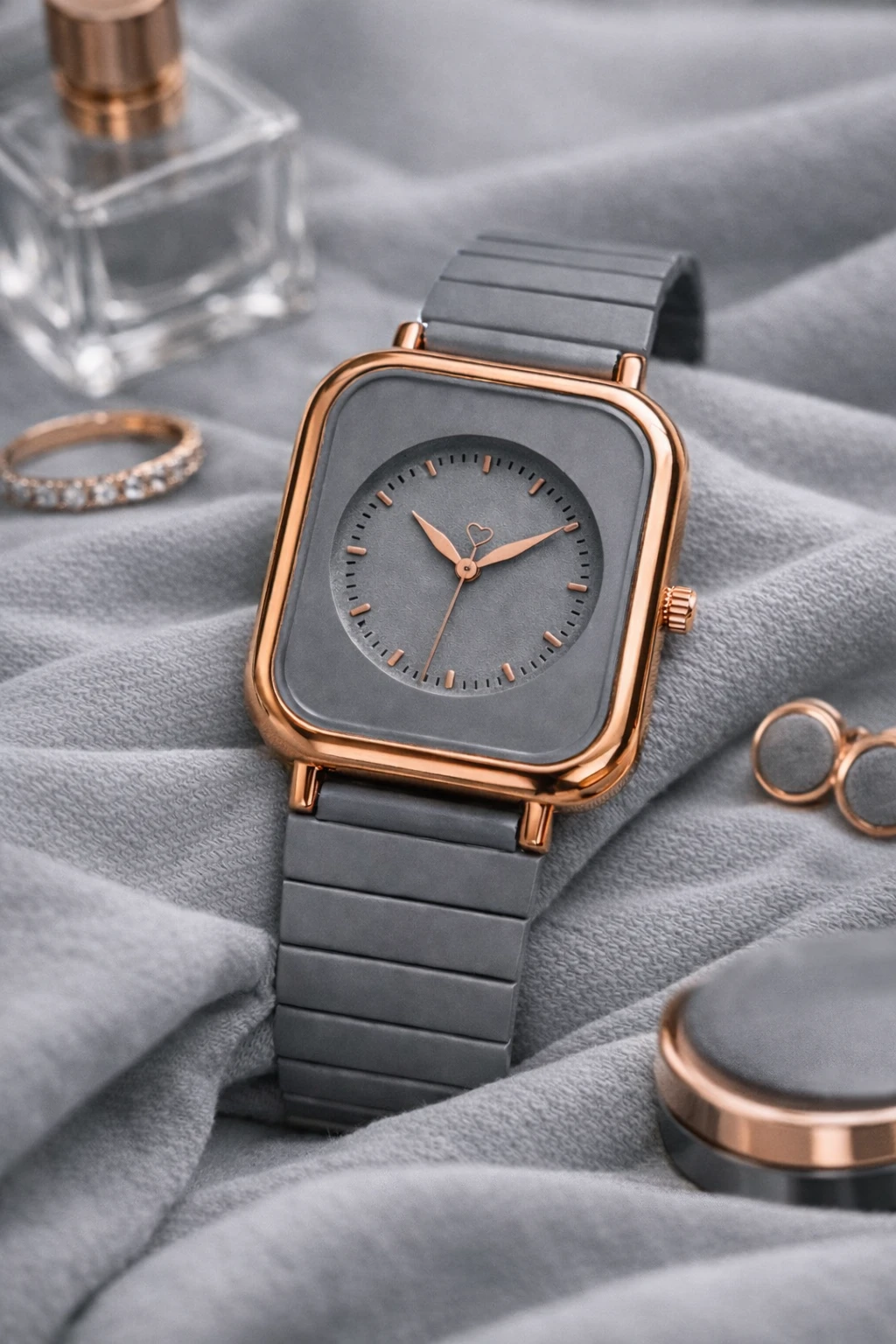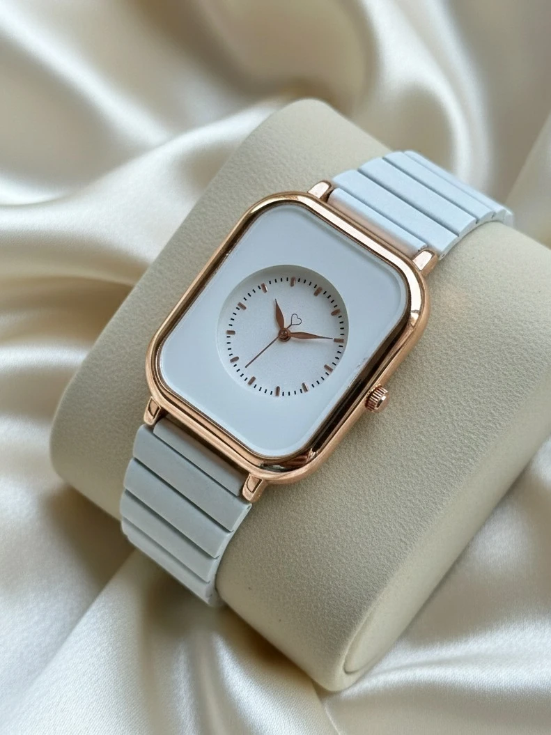 Add a touch of elegance and simplicity to your everyday style with this stunning Women’s White Square Dial Watch. Designed with a premium rose gold finish case and a durable stainless steel strap, this watch offers a perfect blend of luxury and comfort. DRW 043 WHITE The unique square dial with a minimal inner round display and a delicate heart-shaped seconds hand enhances its modern and feminine appeal. The clean white dial gives it a classy and versatile look that pairs perfectly with both casual and formal outfits. Powered by high-precision quartz movement, it ensures accurate timekeeping. Lightweight and comfortable, this watch is ideal for daily wear, office, college, parties, and special occasions.