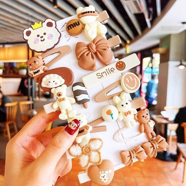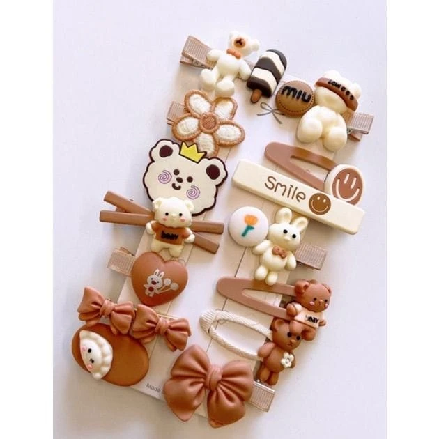 14 pcs multicolour taddy design brown colour fancy look use by baby kids girls womens attractive clips |
