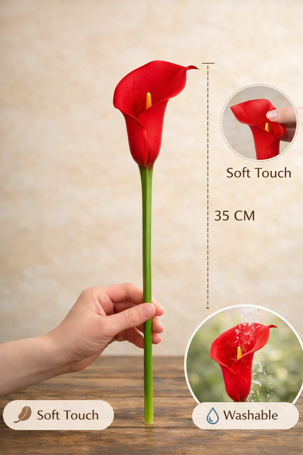 5 Pcs Artificial Red Mini Calla Lily Stems – Realistic Touch Decor (Flowers Only) |