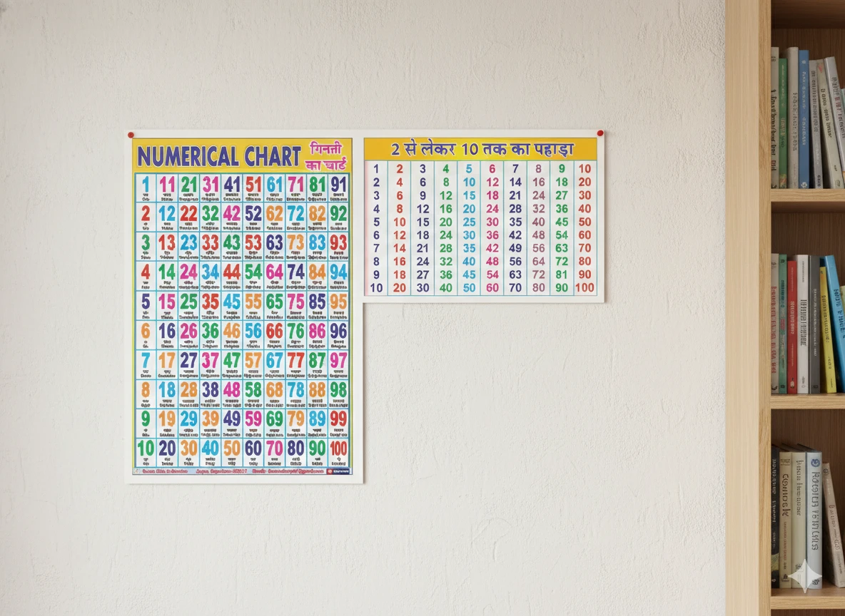 Elevate your child’s early learning experience with the Rudra Kids Collection Educational Sticker Set. This pack of five 12x18 inch wall stickers is specifically designed to make education fun, interactive, and visually stimulating for nursery, preschool, and primary students. This Pack Includes: Hindi Varnamala: Complete vowels (Swar) and consonants (Vyanjan) with colorful illustrations. The Alphabet: Uppercase and lowercase English letters with clear object associations. Numerical Chart (1-100): A comprehensive counting guide from 1 to 100 with names in both English and Hindi. Multiplication Tables: Essential math tables from 2 to 10 for early mathematical development. Parts of the Body: A detailed anatomical guide with bilingual labels for easy identification. Printed on durable waterproof sticker material, these posters are tear-resistant and designed for long-term use in high-traffic areas like playrooms, bedrooms, or classrooms. |
