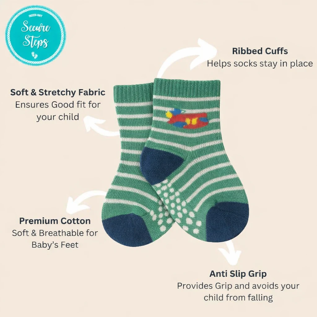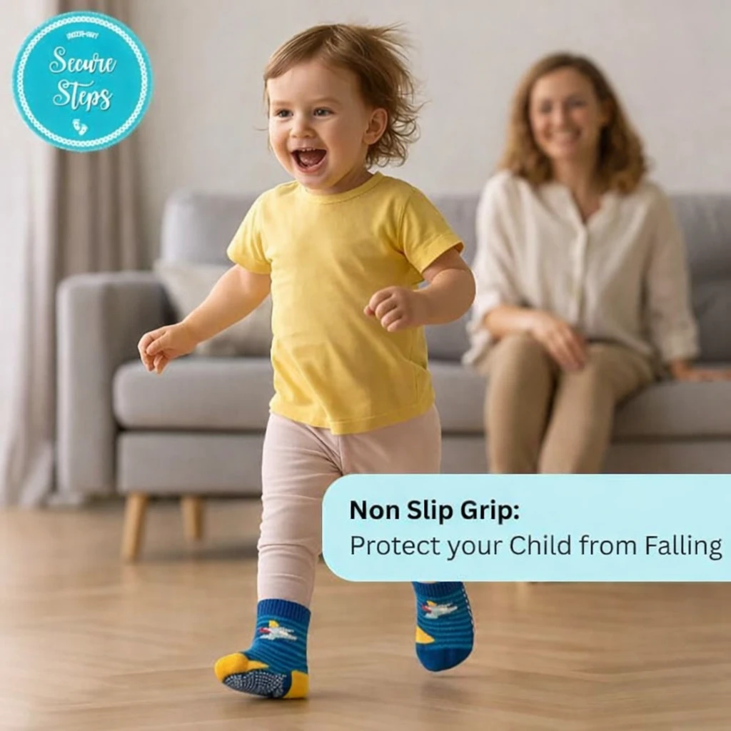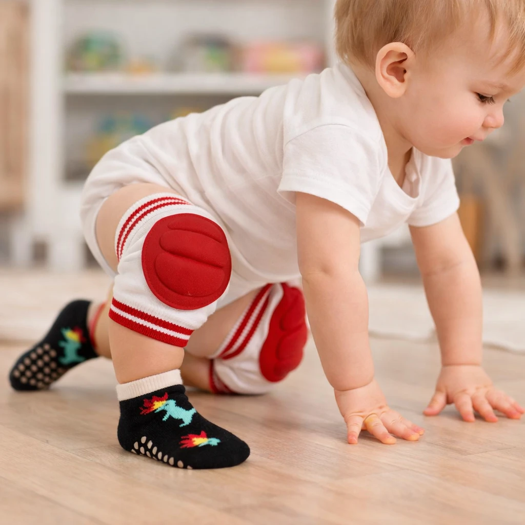Keep your little one safe and comfortable while exploring with these Baby Knee Pads with Anti-Slip Socks for 1–2 Year Old Kids. Specially designed for crawling babies and toddlers, these soft knee protectors help protect delicate baby knees from bruises, scrapes, and friction while crawling on floors, tiles, or carpets. The anti-skid baby socks feature strong non-slip grips that provide better traction and help prevent slipping when babies start crawling, standing, or taking their first steps. Made from high-quality breathable cotton fabric, these baby knee pads and anti slip socks are soft, stretchable, and gentle on your baby's sensitive skin. The elastic design ensures a secure fit without being too tight, allowing babies to move freely and comfortably throughout the day. These toddler knee protectors are lightweight, durable, and suitable for use at home or during playtime. Perfect for boys and girls aged 1–2 years, this baby crawling protection set supports your child during important development stages like crawling and early walking. Easy to wash and long-lasting, these baby safety knee pads with anti-slip socks are a must-have baby safety accessory for parents who want extra protection and for their active little ones Baby Knee Pads Anti Slip Baby Socks Baby Crawling Knee Pads Toddler Knee Protectors Baby Anti Skid Socks Crawling Baby Protect |