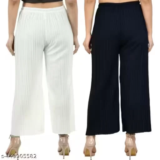 Plus Size Women's 2pcs Summer And Autumn Casual Loose Texture Fabric Elastic Waist Pocket Wide Leg Pants Black And White 2 Packs, Women Bottoms, Curvy Clothes, Fall, Back To School, Office Wear, Pants, Teacher Pants, Baggy Women Pants, Work Clothes |