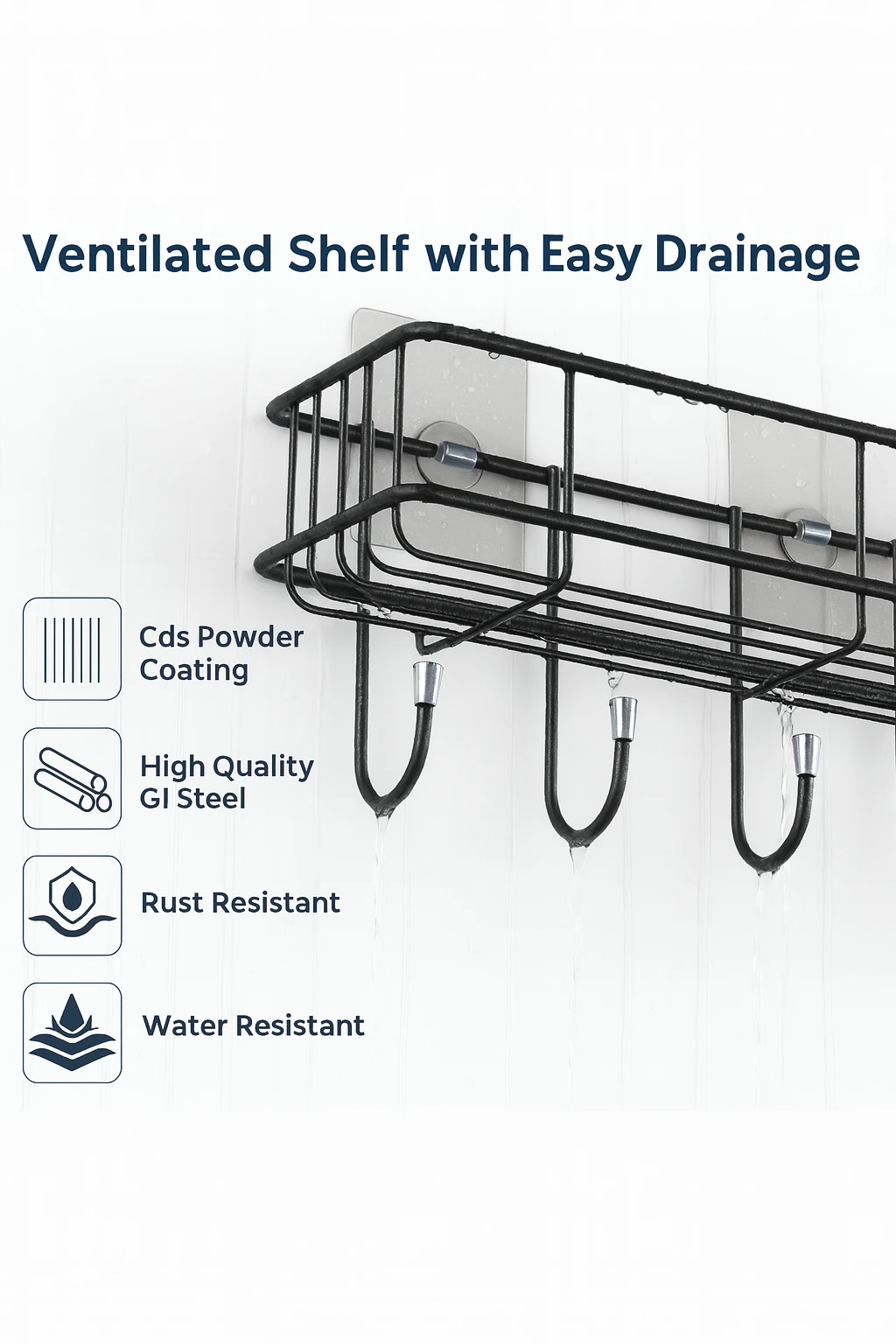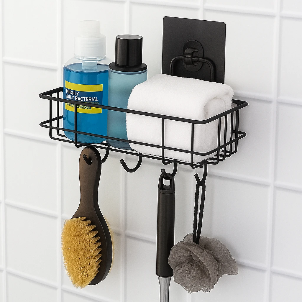 Upgrade your bathroom organization with this Black Bathroom Organiser ā Stylish Adhesive Bathroom Shelf Organizer designed to keep your essentials neatly arranged and easily accessible. Made with a strong and durable metal frame with a modern black finish, this organiser adds a sleek and elegant touch to any bathroom dĆ©cor. This multipurpose shelf storage is perfect for storing shampoo bottles, soaps, face wash, lotions, perfumes, and other bathroom accessories. The strong adhesive stickers allow easy installation without drilling, protecting your walls while ensuring a firm and secure hold. Its compact yet spacious design helps maximize bathroom space and keeps your countertop clutter-free. Ideal for bathrooms, kitchens, wash areas, or utility spaces, this organiser combines style, durability, and functionality in one convenient storage solution. The rust-resistant coating ensures long-lasting performance even in humid environments. Key Features: