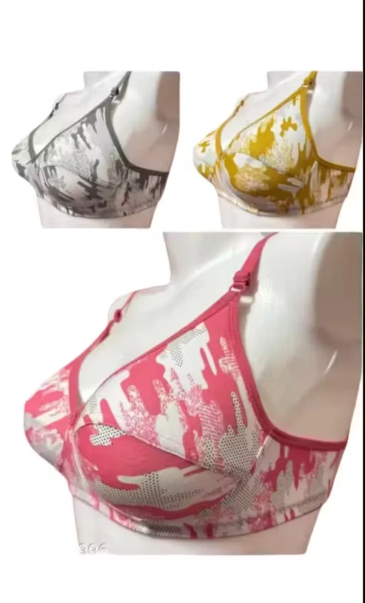 Byoubra® interlock Print Women Bra Non Wired Cotton Bras pack Of 3 PCS (Yellow, Pink, Grey) |