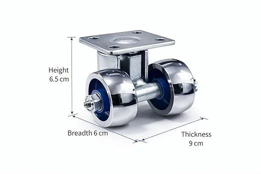 These heavy-duty industrial furniture castors are built to handle substantial weight whilst providing smooth mobility for your furniture and equipment. Each set includes 4 top-quality iron wheels measuring 2 inches (approximately 50mm) in diameter, designed for durability and long-lasting performance. The robust cast iron construction ensures these castors can withstand the demands of industrial environments, workshops, and heavy furniture applications. The sleek silver finish with orange accents adds a professional appearance whilst the sturdy build guarantees reliable operation. Each castor features a convenient top plate mounting system with pre-drilled holes for easy installation, and the package includes all necessary so you can start using them immediately. With a total weight of 1800 grams for the set, these castors strike the perfect balance between strength and practicality. The 50 mm size specification makes them suitable for a wide range of furniture pieces including workbenches, tool chests, storage units, and industrial trolleys. No assembly is required – simply attach them to your furniture using the included hardware and enjoy enhanced mobility. Made in India, these castors represent excellent value for anyone seeking to add smooth-rolling functionality to heavy furniture or equipment. |