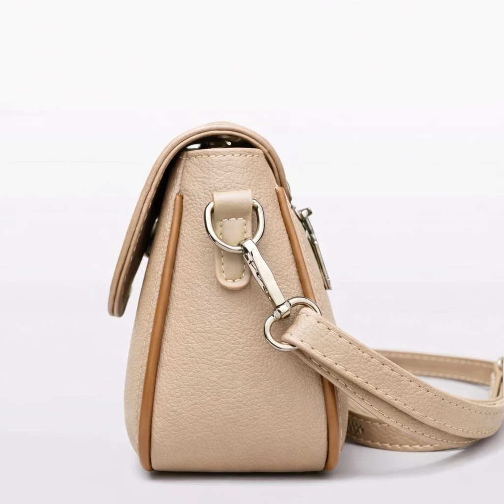Despite its compact size, the bag offers enough space to keep your essentials organized, such as your phone, wallet, keys, and small accessories. Its timeless black design with contrast stitching adds a touch of sophistication that pairs well with almost any outfit. BEIGE SLING BAG |