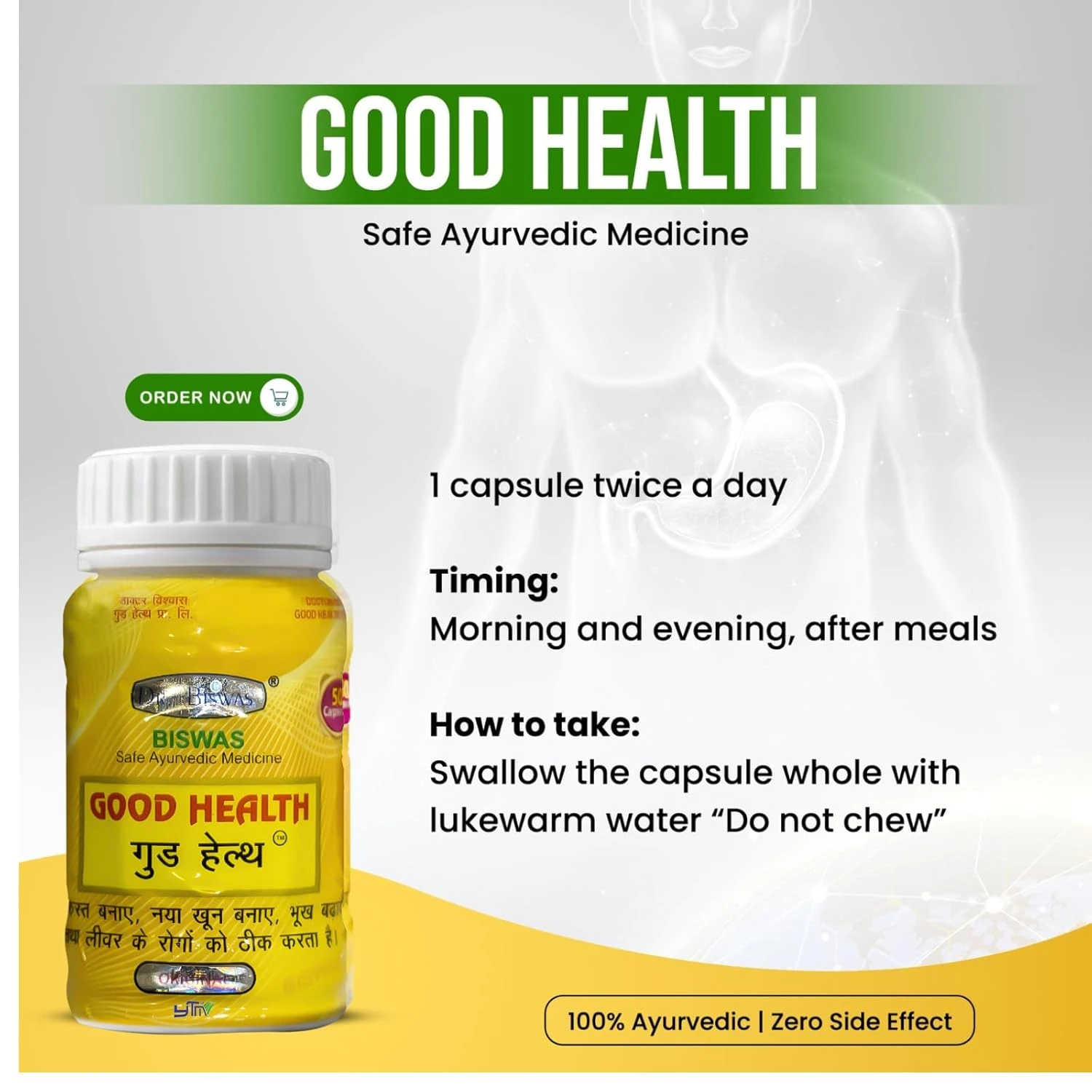 Natural Body Growth & Wellness with Dr. Biswash Good Health Capsules! Kya aap apne dublepan se pareshan hain aur natural tarike se sehat banana chahte hain? Dr. Biswash Good Health Capsules ek bharosemand Ayurvedic formula hai jo sharir ko tandurust banane aur liver ki karyashakti badhane mein madad karta hai. Is Product Ke Main Fayde: