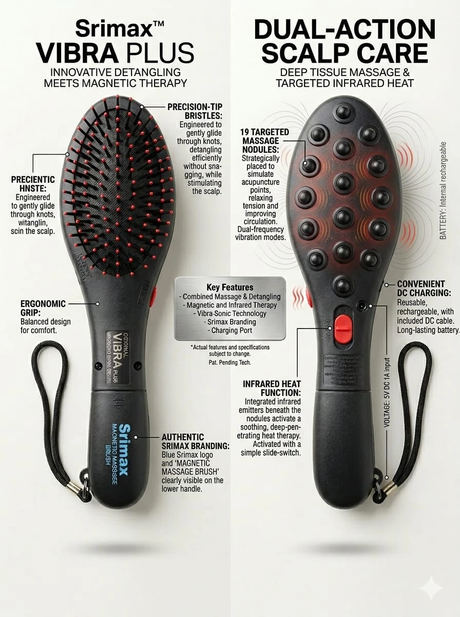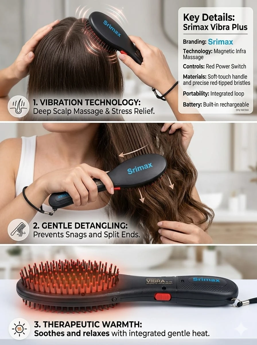 Upgrade your hair care routine with this Electric Scalp Massager Brush with Infrared Heat & Vibration, designed to give you a relaxing spa-like experience at home. This innovative 2-in-1 hair brush and scalp massager gently detangles your hair while stimulating the scalp to improve blood circulation and promote healthy hair growth. Equipped with soft precision bristles, this hair massage comb glides smoothly through knots without pulling or damaging your hair. The infrared heat therapy helps relax the scalp, reduce stress, and enhance nourishment to hair roots. Its dual vibration modes provide deep tissue massage, making it perfect for relieving tension and improving scalp health. The brush features a USB rechargeable design, making it portable and convenient for daily use at home, office, or travel. Suitable for both men and women, this scalp massager is ideal for all hair types. 🔹 Key Features: