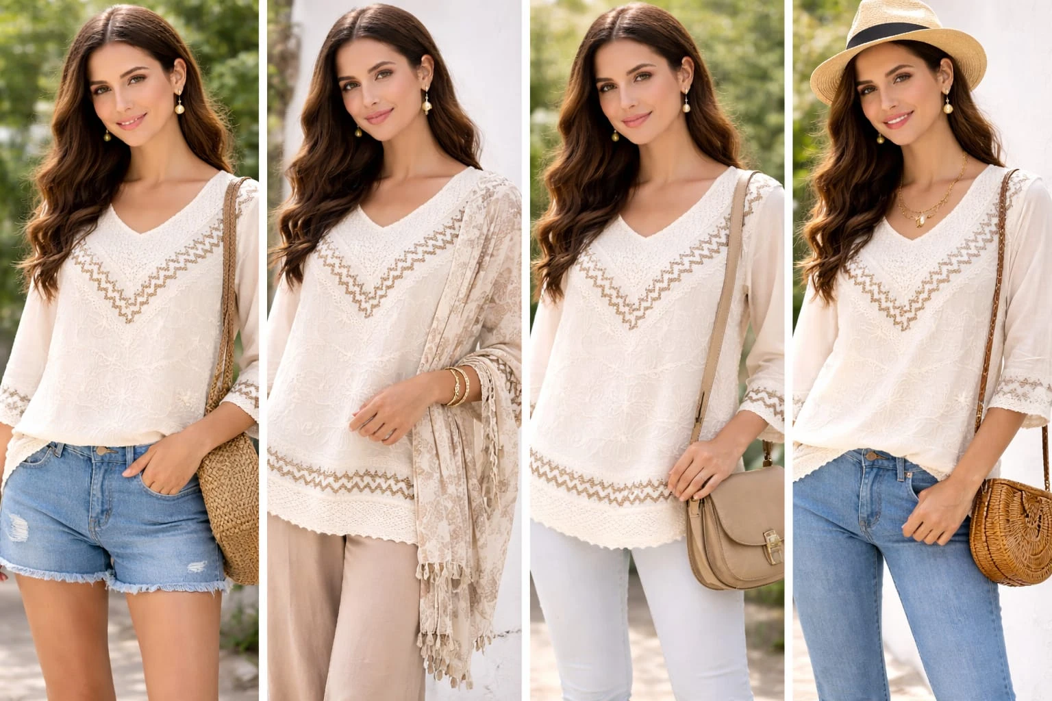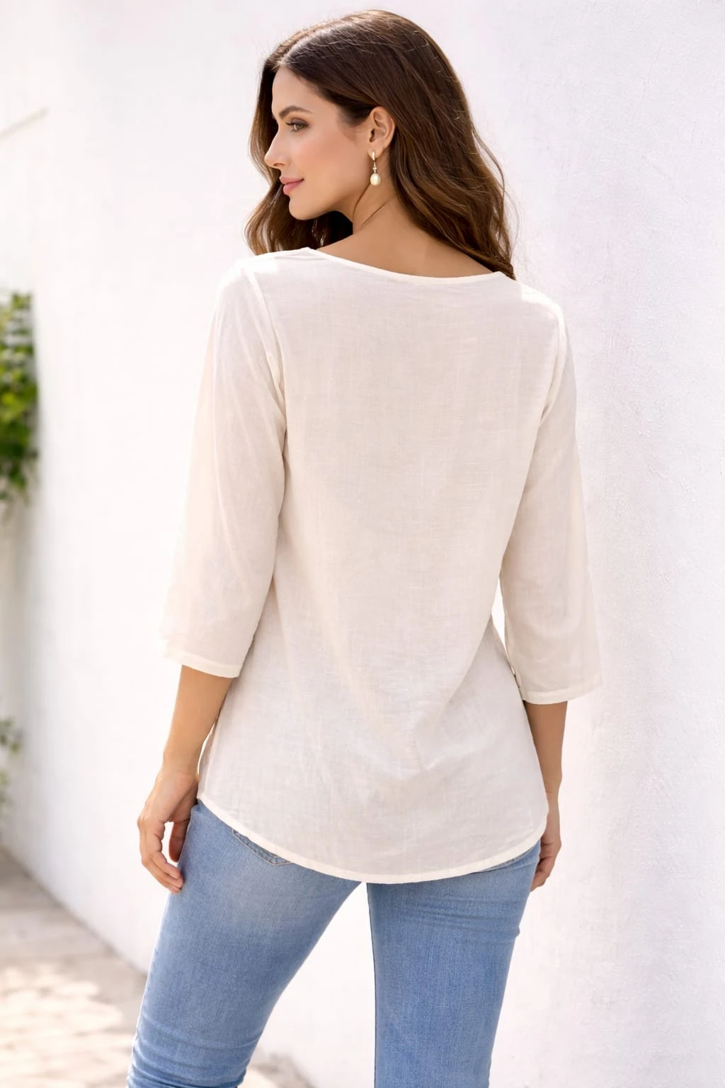 Upgrade your everyday style with this elegant ivory embroidered lace top, designed to blend comfort with timeless sophistication. Crafted from lightweight, breathable fabric, this top features intricate lace detailing and delicate embroidery that adds a graceful charm to your look. The flattering V-neckline enhances your silhouette, while the sheer three-quarter sleeves with embroidered cuffs bring a touch of femininity and elegance. The relaxed fit ensures all-day comfort, making it perfect for casual outings, brunch dates, or semi-formal occasions. Pair it effortlessly with your favorite jeans or trousers for a chic, polished look that stands out with subtle detailing and refined style. |