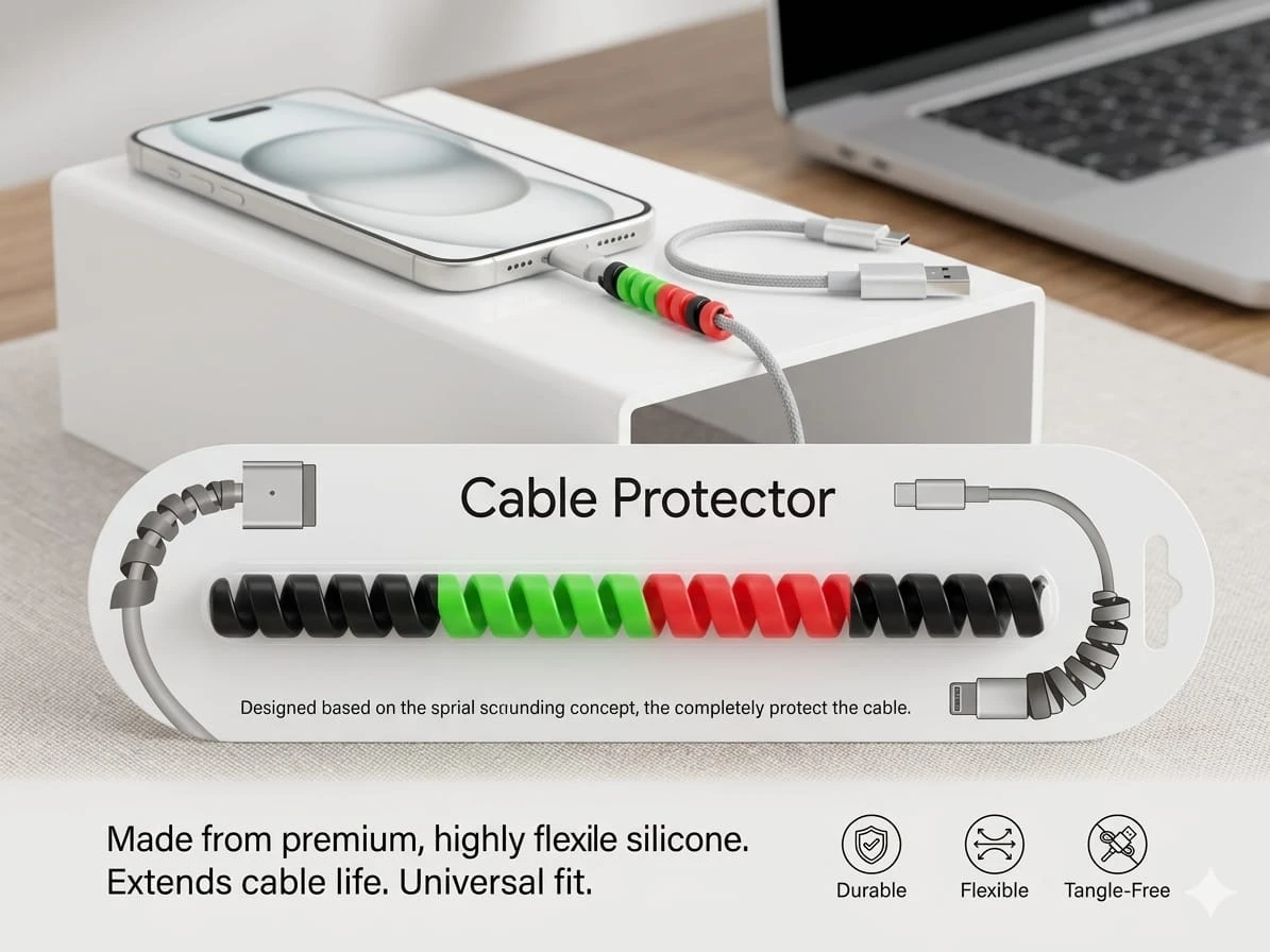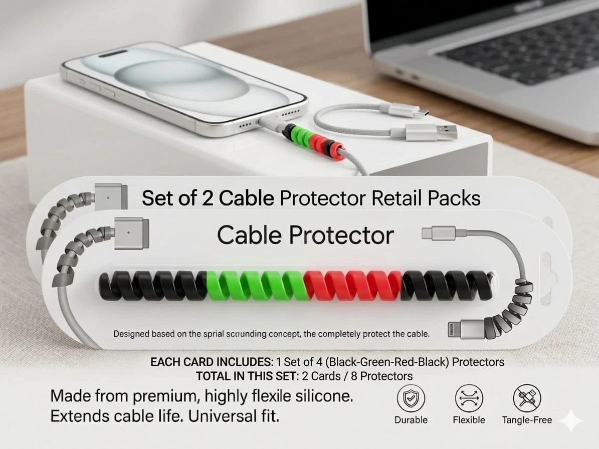 Protect your charging cables from damage, bending, and fraying with this Silicone Cable Protector Set. Designed with a flexible spiral structure, this wire protector easily wraps around your cables to provide full-length protection and extend their lifespan. Made from premium quality silicone, these cable protectors are soft, durable, and highly flexible, ensuring a secure grip without damaging the cable. You can use multiple protectors together to create a continuous protective sleeve or apply them at key stress points for incremental protection. This universal cable protector is compatible with all types of charging cables including USB, Type-C, Lightning cables, earphones, and laptop chargers. Ideal for daily use, it prevents cable breakage, tangling, and wear & tear.