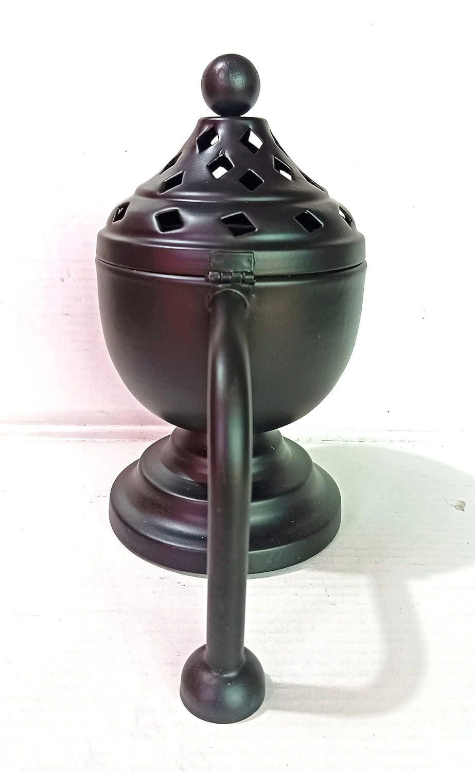 Material :- Iron Color :- Black Size (Length X Width X Height) :- 17 X 10 X 16 CM Weight (gms) :-300 The Heaven Decor Incense Burner is an exquisitely crafted piece designed to elevate the ambiance of any space with soothing aromas and an aura of tranquility. This multipurpose burner is specifically designed for burning loban (frankincense), sambrani dhoop, dhoop sticks, or resin incense, making it a perfect addition to your home, office, or temple. Whether you are seeking to create a peaceful environment for meditation, prayer, or simply wish to enjoy the calming effects of incense, this burner is an ideal choice. 1. Premium Quality Construction:Crafted from high-quality, heat-resistant materials, the Heaven Decor Incense Burner is built to last. It is designed to safely handle the heat generated by burning resins and incense without compromising its integrity. The durable construction ensures that you can use it time and again without worry. 2. Versatile Use with Resin Incense:This burner is especially suitable for burning various types of resin-based incense, including loban, sambrani dhoop, and other fragrant resins. These resins release a pleasant, rich fragrance when burned, creating an atmosphere of serenity and peace in your surroundings. Whether for daily rituals, meditation, or as a calming fragrance for your space, this burner is versatile and easy to use. 3. Traditional Design with Modern Convenience:The Heaven Decor Incense Burner features a classic, yet practi The Heaven Decor Incense Burner is an exquisitely crafted piece designed to elevate the ambiance of any space with soothing aromas and an aura of tranquility. This multipurpose burner is specifically designed for burning loban (frankincense), sambrani dhoop, dhoop sticks, or resin incense, making it a perfect addition to your home, office, or temple. Whether you are seeking to create a peaceful environment for meditation, prayer, or simply wish to enjoy the calming effects of incense, this burner is an ideal choice. 1. Premium Quality Construction:Crafted from high-quality, heat-resistant materials, the Heaven Decor Incense Burner is built to last. It is designed to safely handle the heat generated by burning resins and incense without compromising its integrity. The durable construction ensures that you can use it time and again without worry. 2. Versatile Use with Resin Incense:This burner is especially suitable for burning various types of resin-based incense, including loban, sambrani dhoop, and other fragrant resins. These resins release a pleasant, rich fragrance when burned, creating an atmosphere of serenity and peace in your surroundings. Whether for daily rituals, meditation, or as a calming fragrance for your space, this burner is versatile and easy to use. 3. Traditional Design with Modern Convenience:The Heaven Decor Incense Burner features a classic, yet practi |