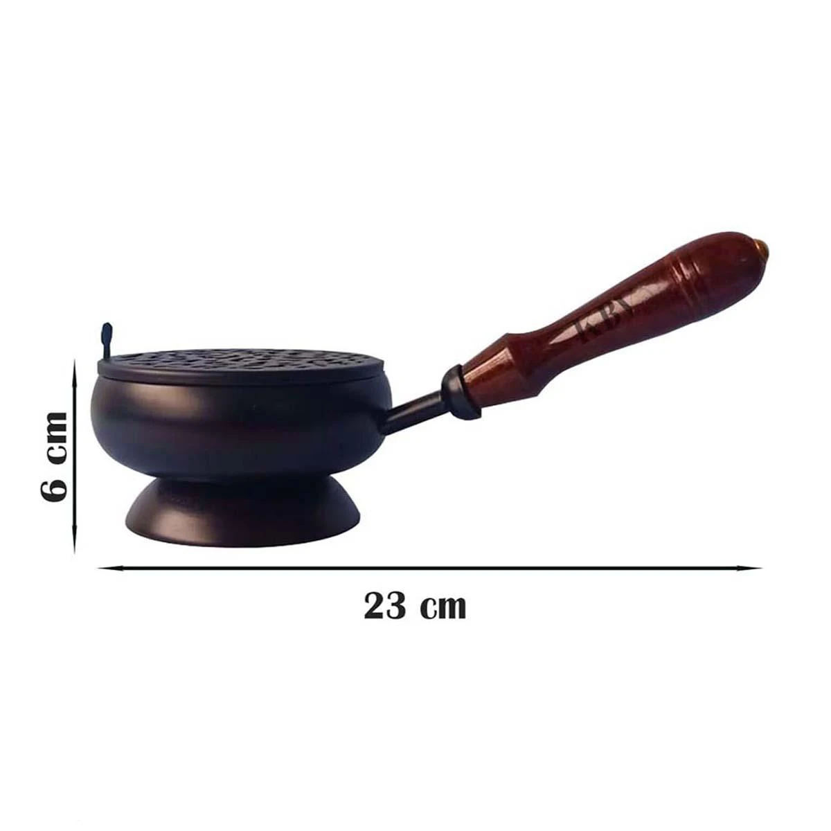 Material :- Iron Color :- Black Size (Length X Width X Height) :- 23 X 10 X 6 CM Weight (gms) :-275 The Heaven Decor Incense Burner is an exquisitely crafted piece designed to elevate the ambiance of any space with soothing aromas and an aura of tranquility. This multipurpose burner is specifically designed for burning loban (frankincense), sambrani dhoop, dhoop sticks, or resin incense, making it a perfect addition to your home, office, or temple. Whether you are seeking to create a peaceful environment for meditation, prayer, or simply wish to enjoy the calming effects of incense, this burner is an ideal choice. 1. Premium Quality Construction:Crafted from high-quality, heat-resistant materials, the Heaven Decor Incense Burner is built to last. It is designed to safely handle the heat generated by burning resins and incense without compromising its integrity. The durable construction ensures that you can use it time and again without worry. 2. Versatile Use with Resin Incense:This burner is especially suitable for burning various types of resin-based incense, including loban, sambrani dhoop, and other fragrant resins. These resins release a pleasant, rich fragrance when burned, creating an atmosphere of serenity and peace in your surroundings. Whether for daily rituals, meditation, or as a calming fragrance for your space, this burner is versatile and easy to use. 3. Traditional Design with Modern Convenience:The Heaven Decor Incense Burner features a classic, yet practi |
