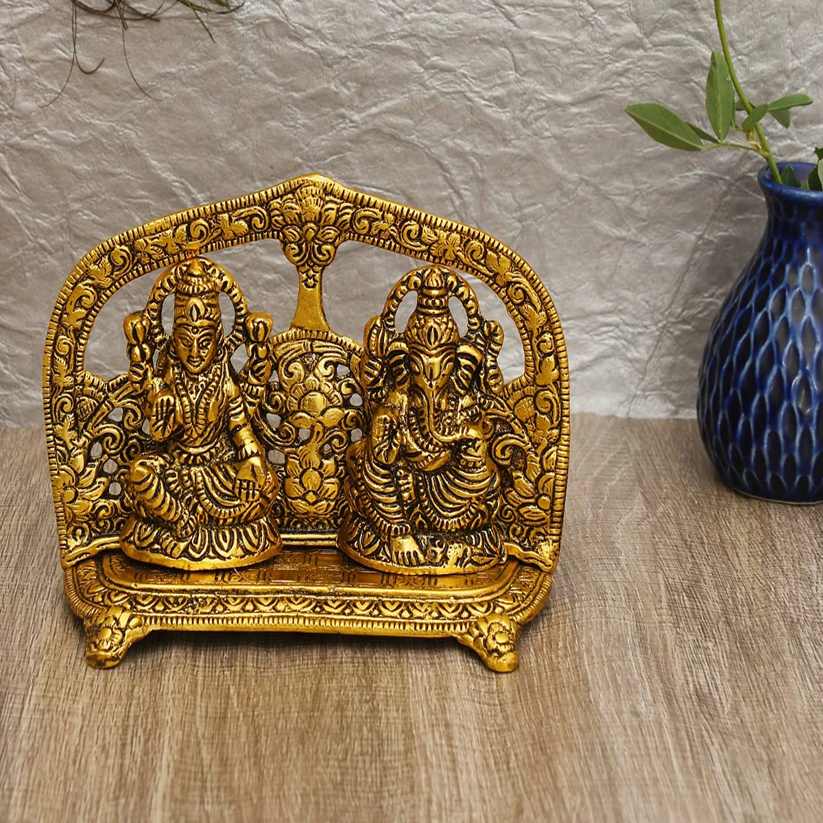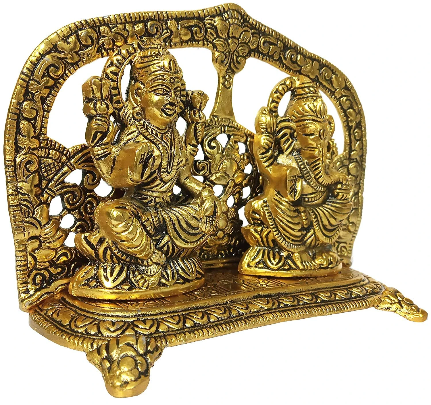 Material :- Allumnium Color :- Golden Size (Length X Width X Height) :- 16 X 4 X 12CM Heaven Decor Metal Golden Finish Laxmi Ganesh . Laxmi Ganesh is gold plated with antique finish so looks very beautiful and use for the purpose of worship and for home decorative. It's design to looks traditional stylish and inspiration from the day's of royal touch, that is made in white-metal casting with silver antiques finish, white metal to bring elegance to your home. This is hand made handcrafted items use it to religious worship of god&goddess. That is use and utility items & an ideals gift it to your dear once to pass on your best wishes, that is an ideal gift for have House warming anniversaries, birthday, wedding gifts, return gifts, corporation gifts, religious-gifts & Indian festivals. |