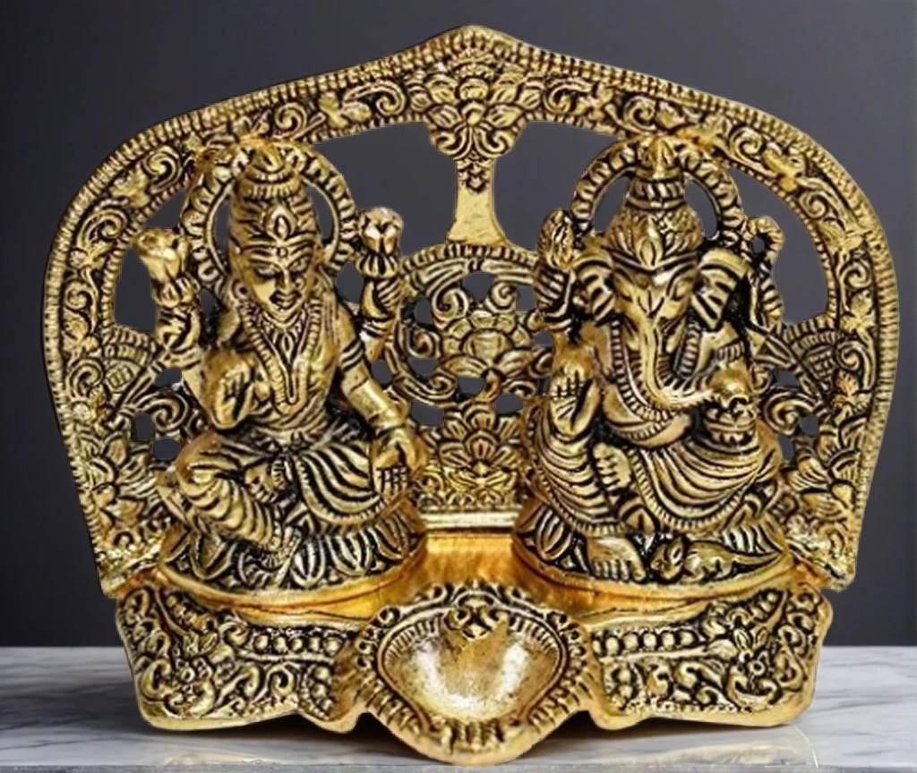Heaven Decor Laxmi Ganesh God Idol Decorative Murti With Diya