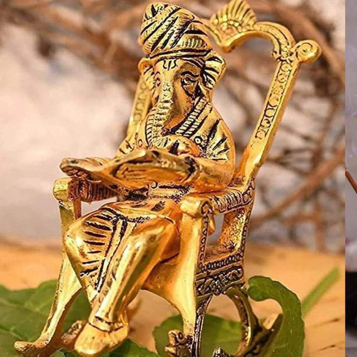 Material :- Allumnium Color :- Golden Size (Length X Width X Height) :- 6 X 8 X 13 CM Weight (gms) :-244 Heaven Decor Lord Ganpati Murti Sitting on Chair Reading Ramayan Idol Sculpture: Elevate your home decor and spiritual ambiance with the exquisite "Heaven Decor Lord Ganpati Murti Sitting on Chair Reading Ramayan" idol. This stunning sculpture captures Lord Ganapati, the beloved elephant-headed deity, in a thoughtful and serene pose, absorbed in reading the sacred Ramayan. Key Features: Artistic Design: The intricate craftsmanship showcases fine details, from Ganesh's facial expressions to the patterns on the chair, exemplifying a blend of traditional art and contemporary style. Material Quality: Made from high-quality materials such as resin or poly stone, this sculpture is designed to be durable and maintain its beauty over time. Vibrant Colors: The idol is often embellished with rich colors and gold accents, enhancing its visual appeal and making it a striking centerpiece in any setting. Dimensions: Its perfect size allows it to fit seamlessly on shelves, mantels, or as part of a home altar, adding a touch of elegance wherever it is placed. Versatile Uses: Decorative Piece: Ideal for enhancing the aesthetics of your living room, study, pooja room, or office. Thoughtful Gift: This idol serves as a meaningful gift for housewarming parties, festivals, weddings, or as a gesture of goodwill for loved ones and spiritual seekers. |