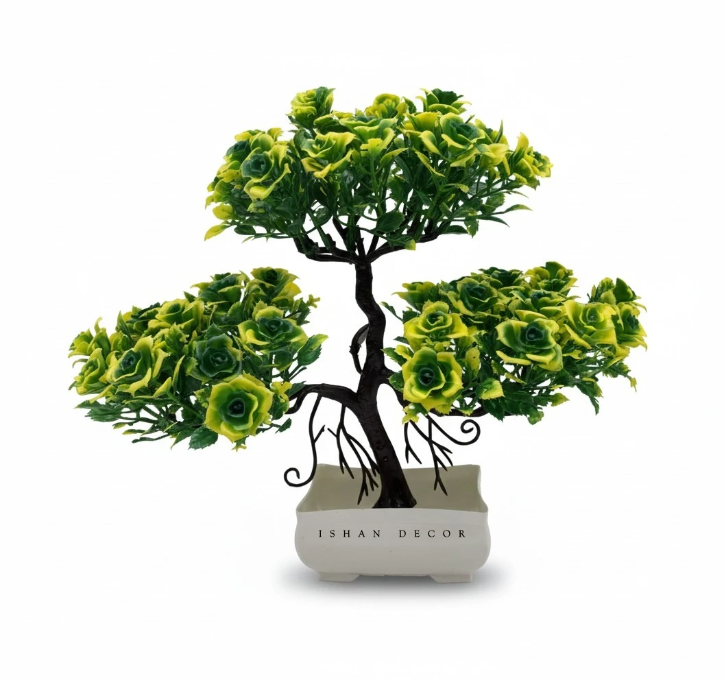 Add elegance and charm to your home with the Ishan Decor Artificial Rose Flower Pot. This beautiful bonsai-style artificial plant features vibrant pink rose flowers arranged in an artistic tree design. The decorative flower arrangement sits in a stylish white pot, making it perfect for living room decor, office desk decoration, bedroom tables, and home interiors. It brings a fresh and natural look without requiring watering or maintenance.