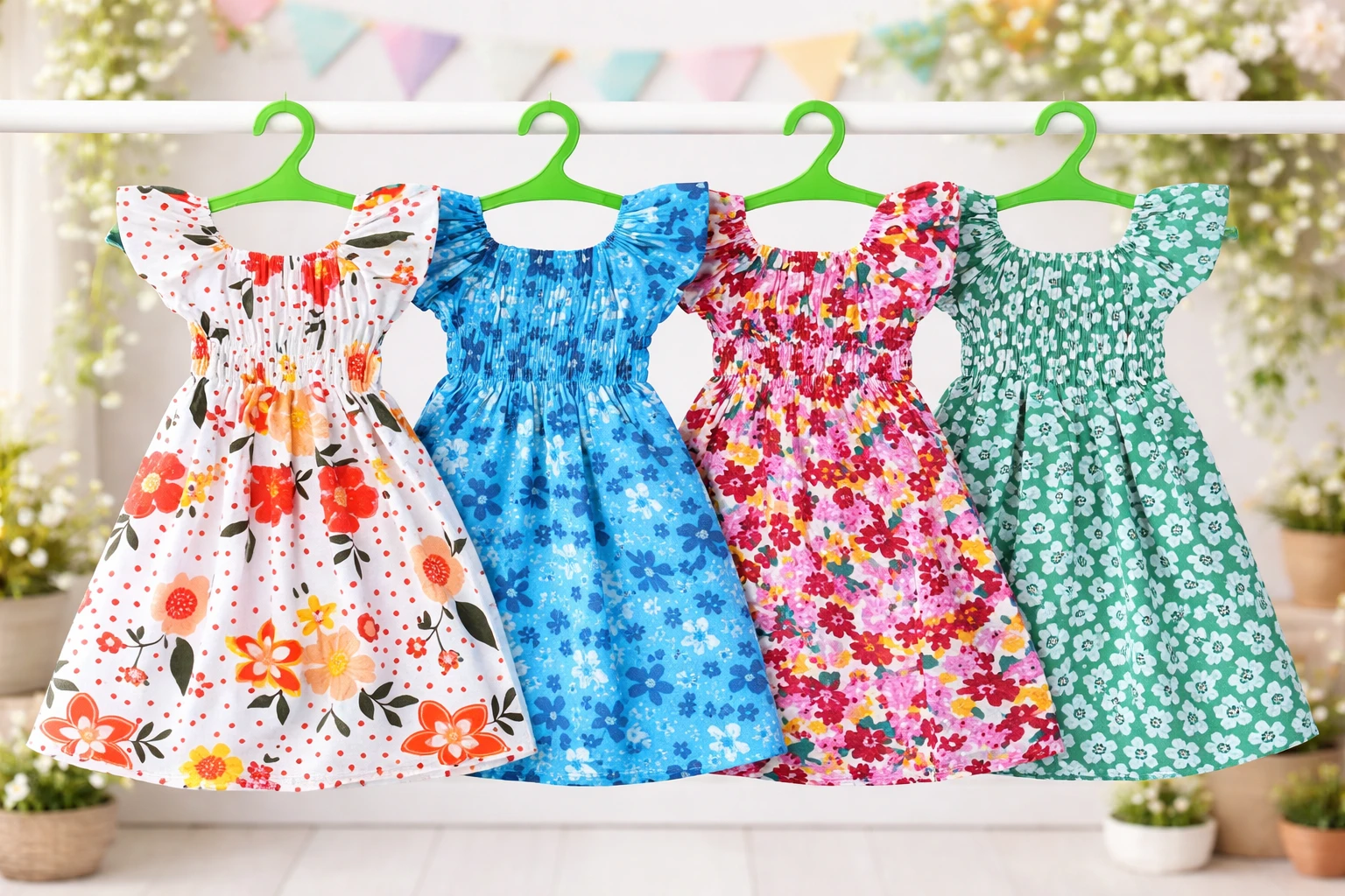 cap sleeve baby Girls Cotton Floral Printed Frocks / Midi / Jabhla Dresses set for infant to kids (Combo Pack of 4) 1 years to 4 years in this price range and in this quaity 100 % cotton Blue midi |