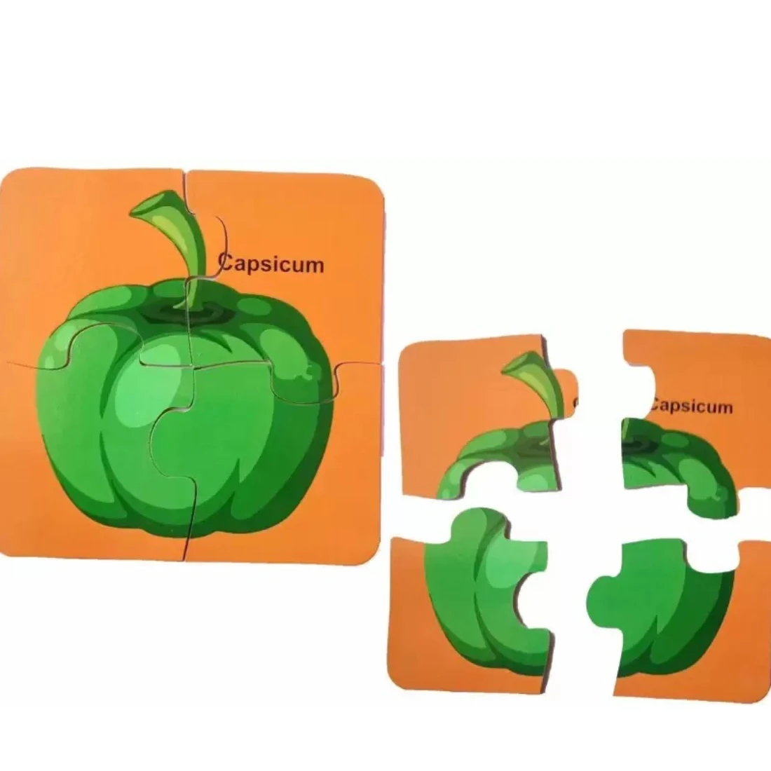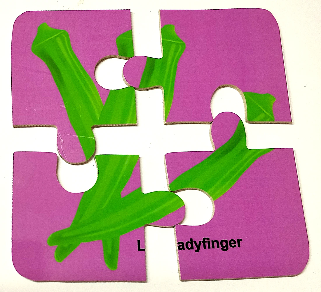 A 4-piece vegetable jigsaw puzzle typically