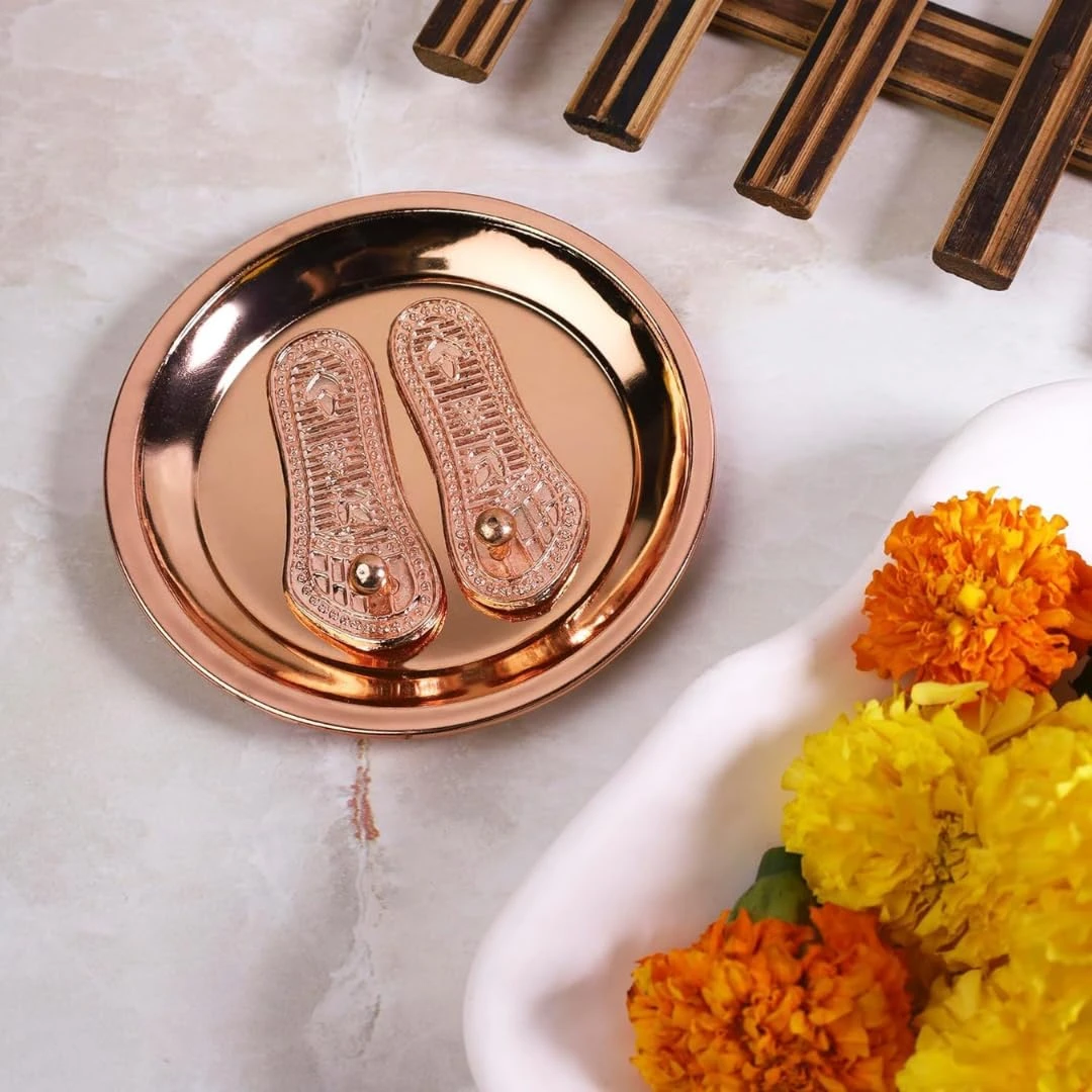 In Hindu mythology It is believed that Charan Paduka symbolizes the foot prints of god and goddess. So keeping Charan Paduka in your Puja Room,Office,Home or Business Permises etc. brings Wealth and prosperity. Jyotirvid charan paduka.
