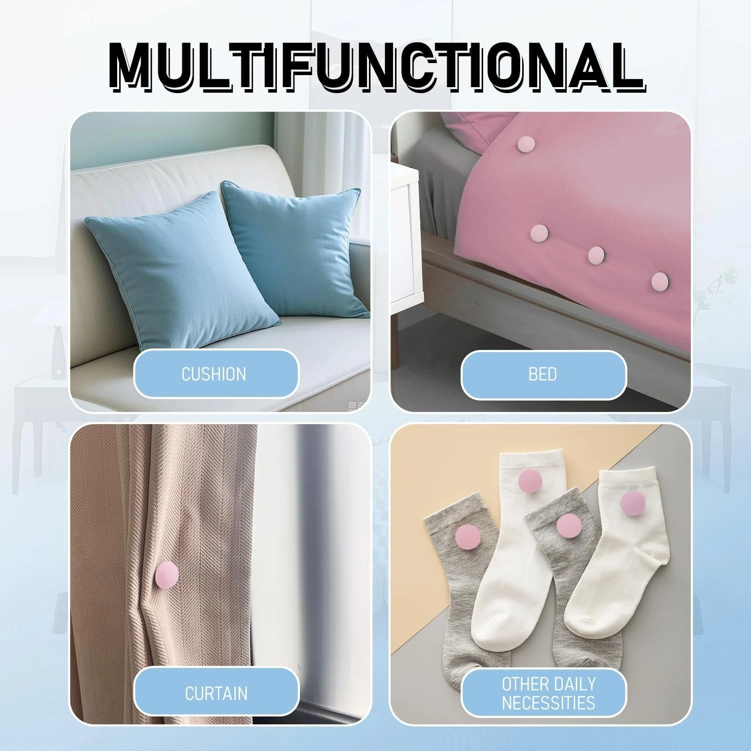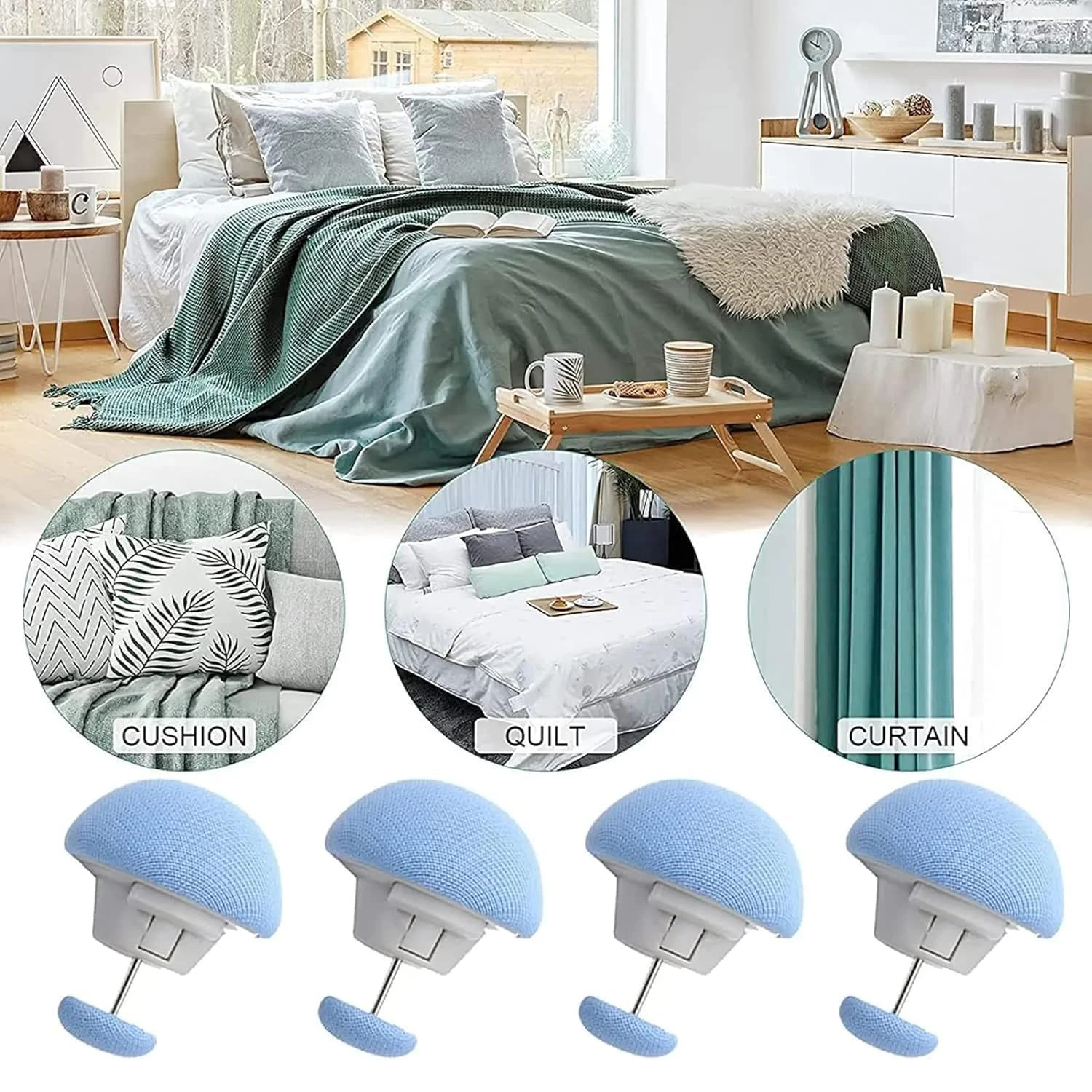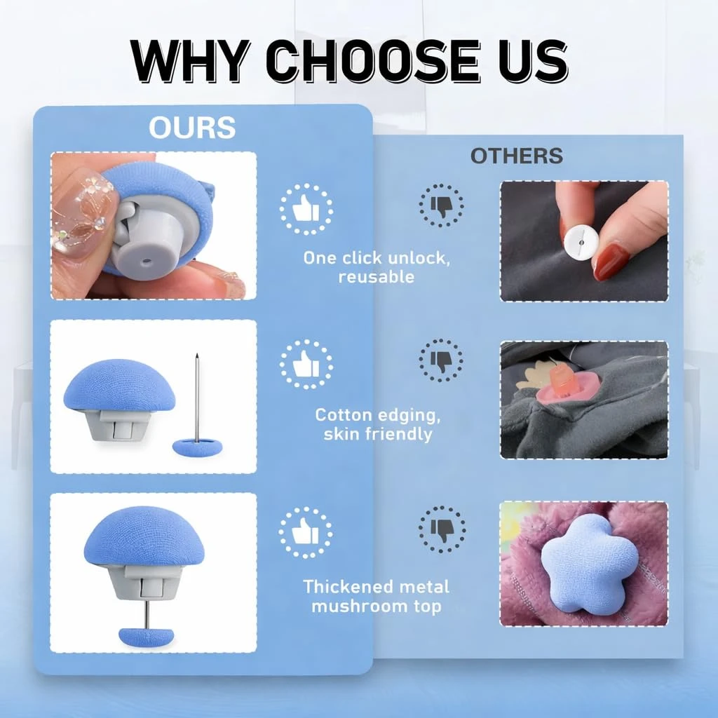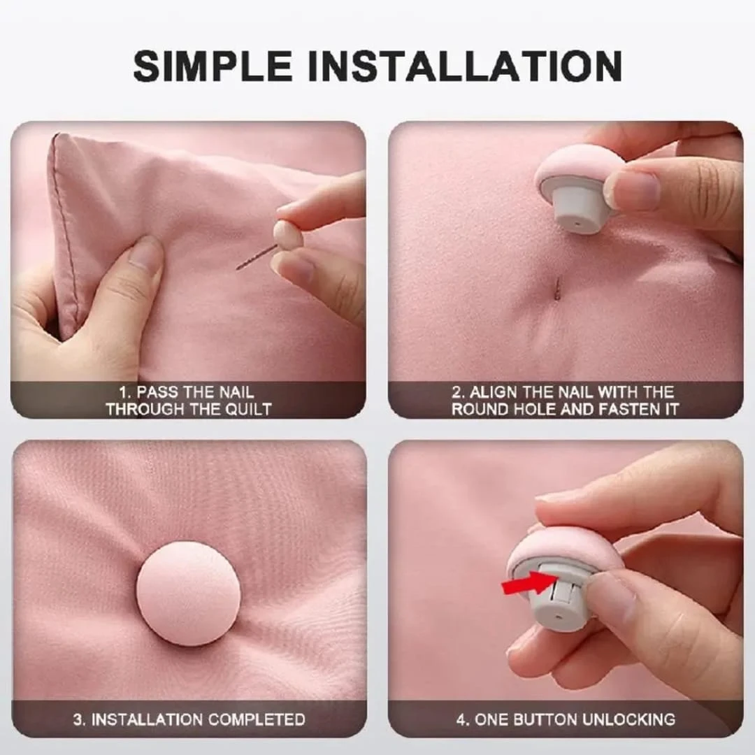 The Ultimate Bedding Solution: Pack of 10 Mixed Color Mushroom Quilt Clips! Ab ek hi pack mein payein do khubsurat colors! Hamara Pack of 10 Combo aapko deta hai 5 Blue aur 5 Pink mushroom clips, jo aapki rajai (quilt) ko cover ke saath securely lock rakhte hain aur bedroom ko ek aesthetic look dete hain. Why This Mixed Combo is Perfect For You: