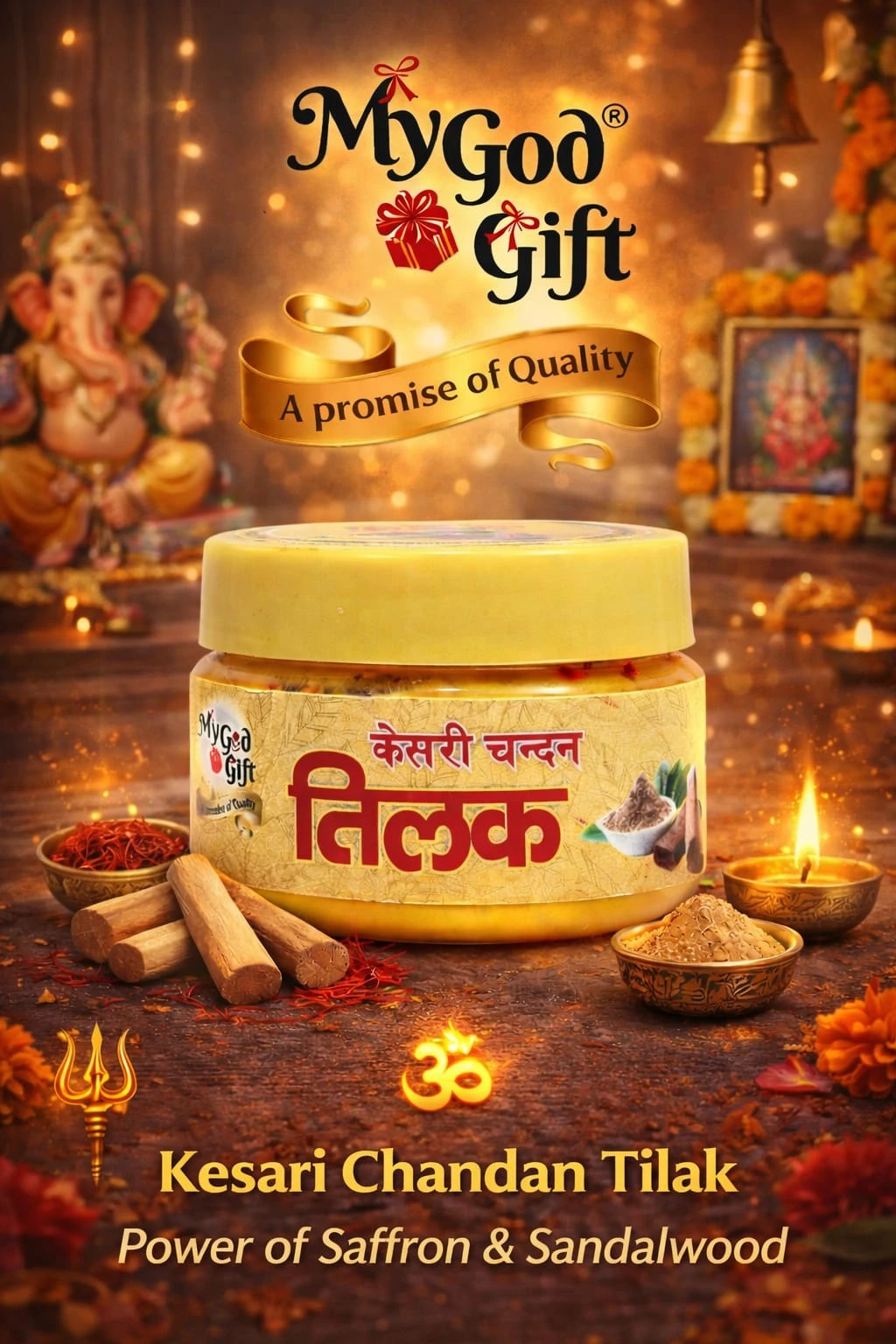 My God Gift Pure Yellow Chandan Paste 50gm is a ready-to-use sandalwood paste specially prepared for pooja, tilak, and religious rituals. Yellow chandan holds a sacred place in Hindu traditions and is widely used in temples and homes for daily worship and spiritual ceremonies. This smooth sandalwood paste has a pleasant natural fragrance and soft texture, making it easy to apply for tilak and religious markings. Yellow chandan is also valued in Ayurveda for its cooling and soothing properties. It can be applied during pooja rituals, festivals, and spiritual occasions to add purity and fragrance.