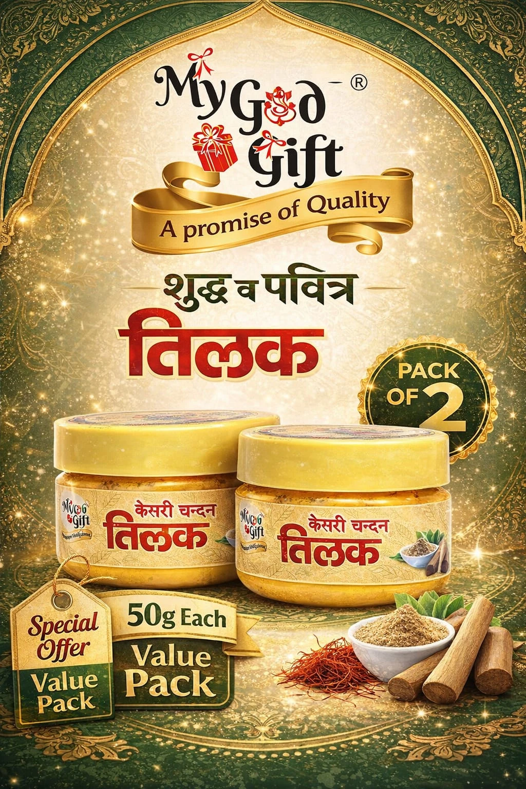 My God Gift Yellow Chandan Powder is carefully packed to maintain purity and freshness. The pack of 2 is convenient for daily pooja, temples, or household spiritual use. It can be easily mixed with water or rose water to create a smooth paste for tilak or ritual application. |