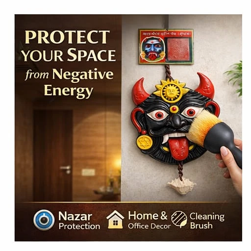 Protect Your Home from Evil Eye & Keep Your Decor Dust-Free! Bring home the ultimate symbol of protection and maintenance. This exclusive combo features a powerful Kal Bhairav Nazar Battu to ward off negative energies and a Premium Soft-Touch Cleaning Brush to ensure your spiritual decor always stays shiny and new. Why This Combo is a Must-Have: