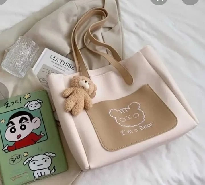 Upgrade your daily style with this cute and elegant women tote handbag in a soothing cream and beige color combination. Crafted from high-quality material, this handbag offers durability along with a soft and classy look. The adorable teddy charm adds a playful and trendy touch, making it perfect for girls and women who love stylish accessories. With a spacious interior, you can easily carry your essentials like phone, wallet, cosmetics, and more. The sturdy shoulder straps ensure comfort, making it ideal for college, office, shopping, and casual outings. |