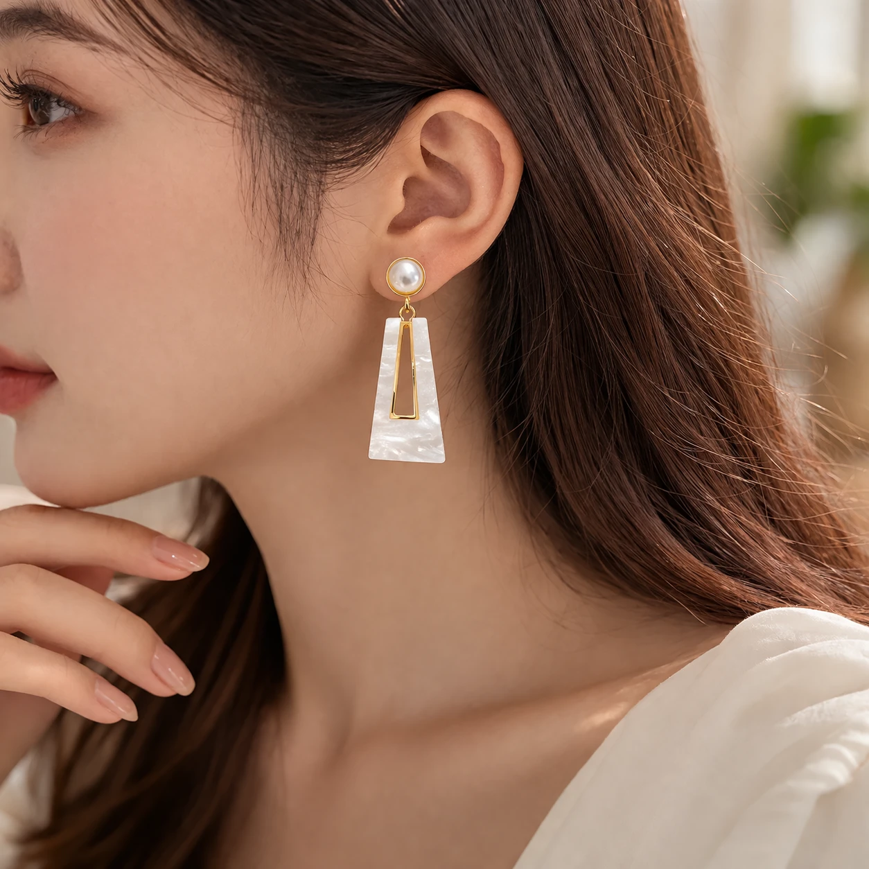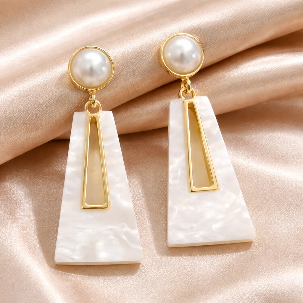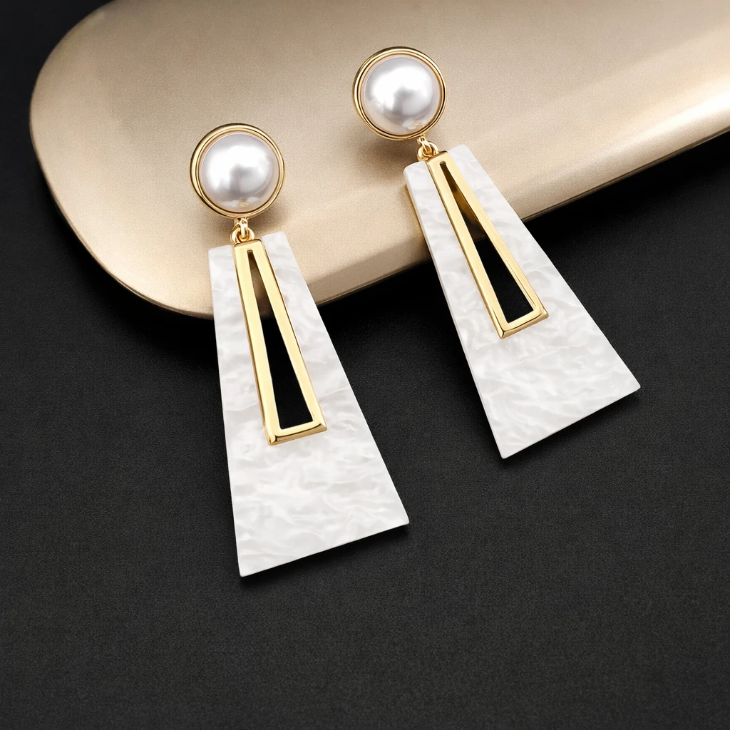 Elevate your style with these elegant Pearl Geometric Drop Earrings for Women, designed to give a modern and classy look. Featuring a beautiful pearl stud with a sleek geometric drop design, these earrings offer a perfect blend of sophistication and trend.