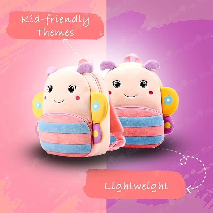 Preminum Quality Soft Fabric Velvet Kids Bag Backpack for Picnic, 2-5 Year, 2 Compartment